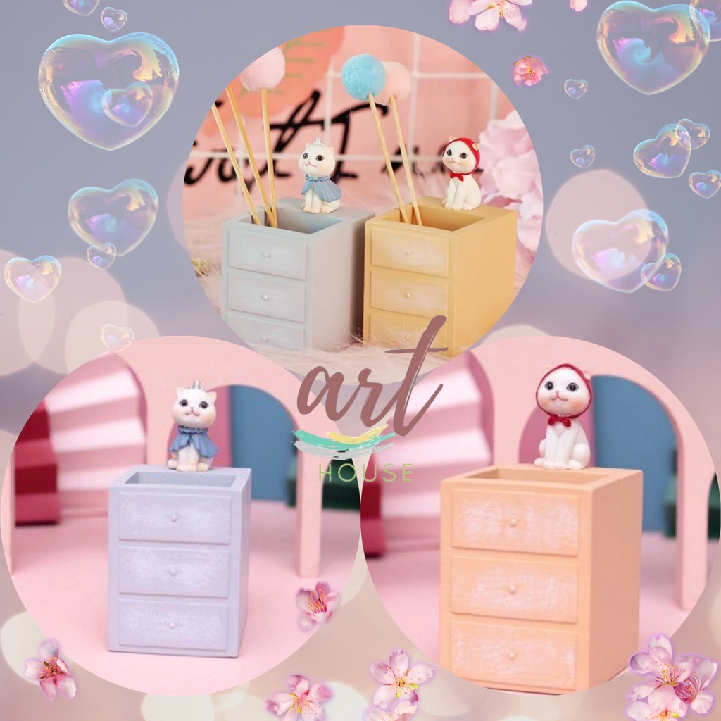 - Hộp cắm bút hình mèo quàng khăn đỏ, mèo công chúa trang trí cho bàn làm việc và bàn học của bạn thêm xinh xắn dễ thương, dùng decor phòng học bàn làm việc