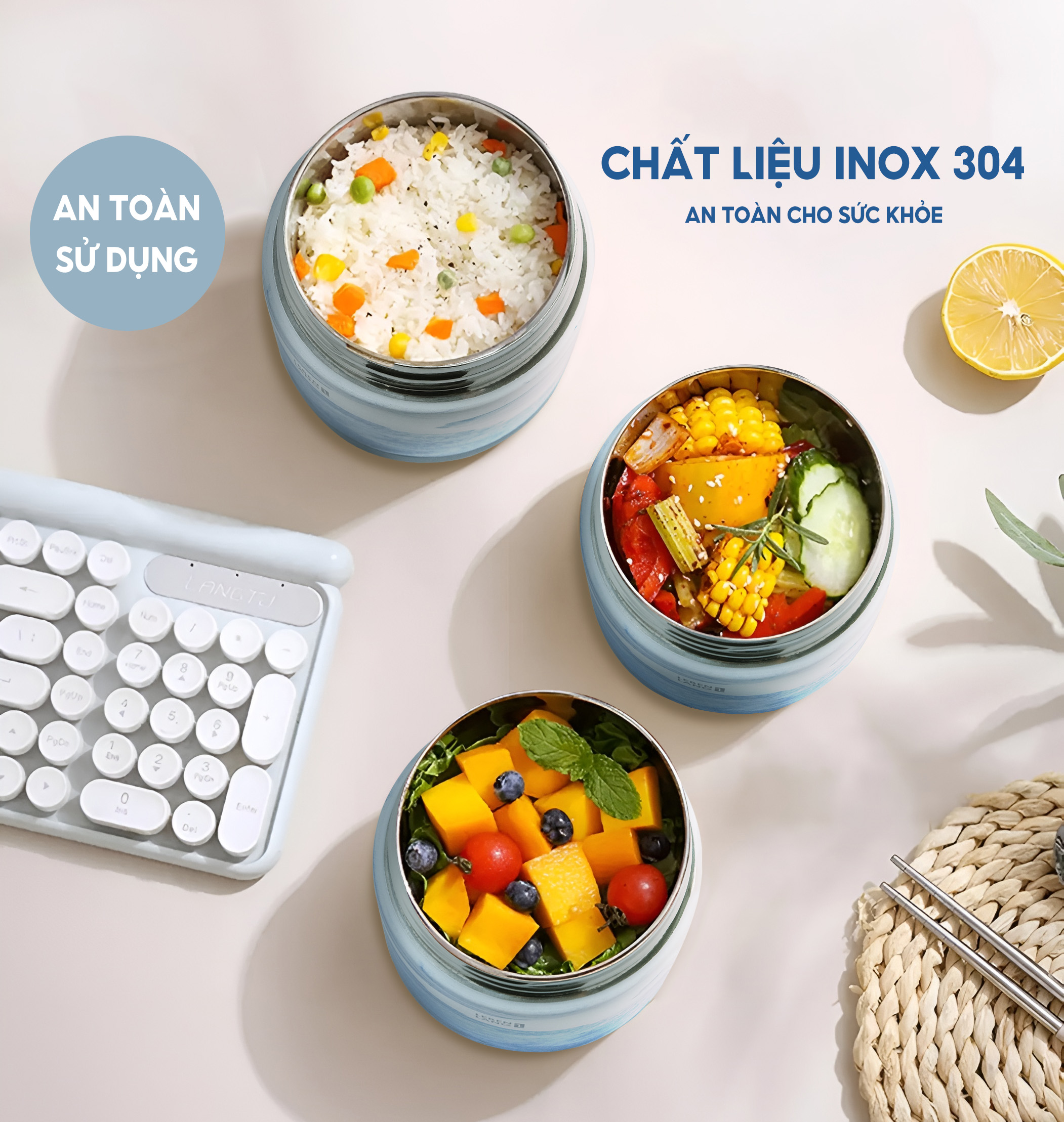 Chất liệu dùng cho thực phẩm: Được làm bằng thép không gỉ 304 dùng cho thực phẩm. KHÔNG CHỨA BPA và không độc hại. Hộp đựng cách nhiệt được FDA chấp thuận cho thực phẩm tốt cho