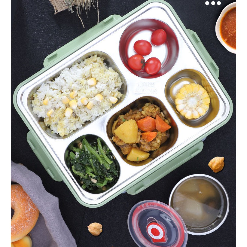 Hộp Cơm Văn Phòng 5 Ngăn Inox 304 Giữ Nhiệt Chống Tràn Có Giá Điện Thoại Tặng Thìa Đũa Cao Cấp- Hàng Chính Hãng MINIIN