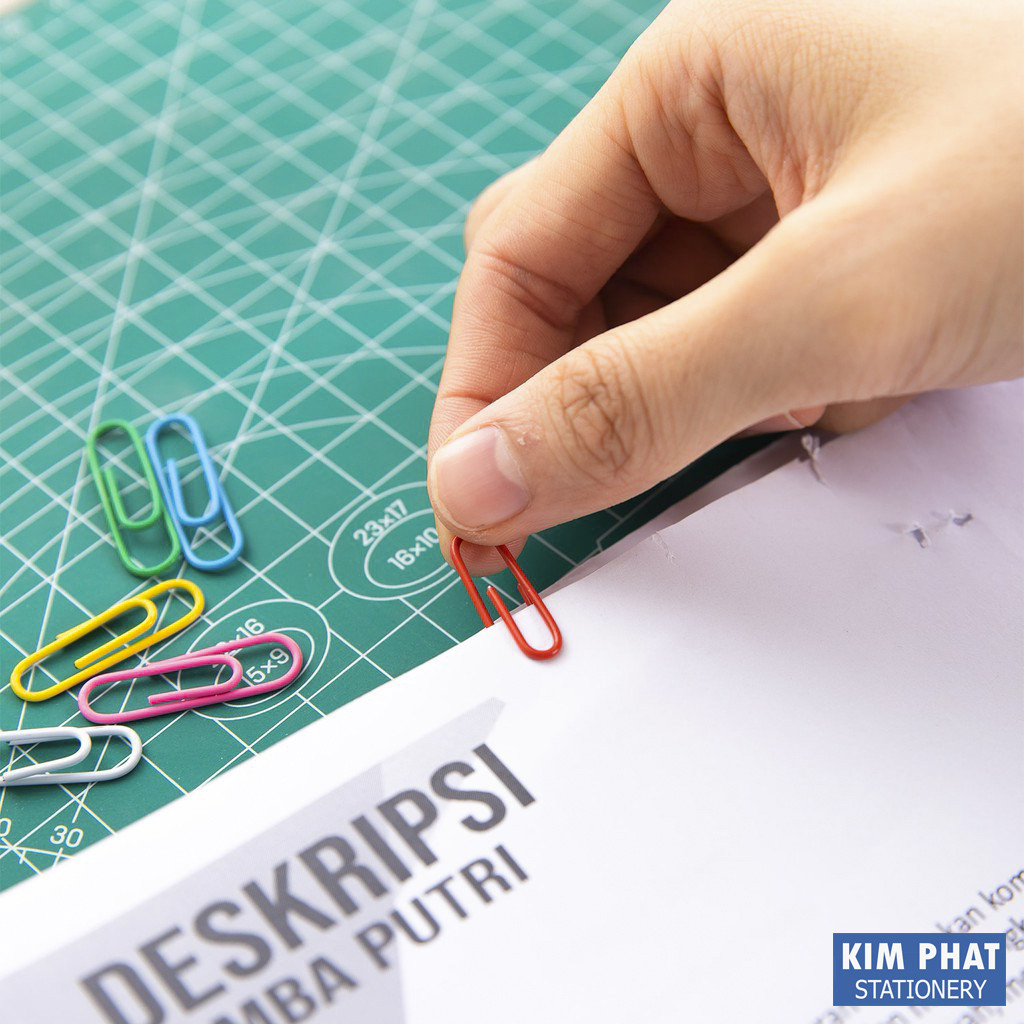 Đặc điểm sản phẩm: -Là sản phẩm kim kẹp đầu tam giác, có bọc nhựa nhiều màu, sử dụng để kẹp các tờ giấy gọn gàng, ngăn nắp trong văn phòng. -Số lượng trang giấy