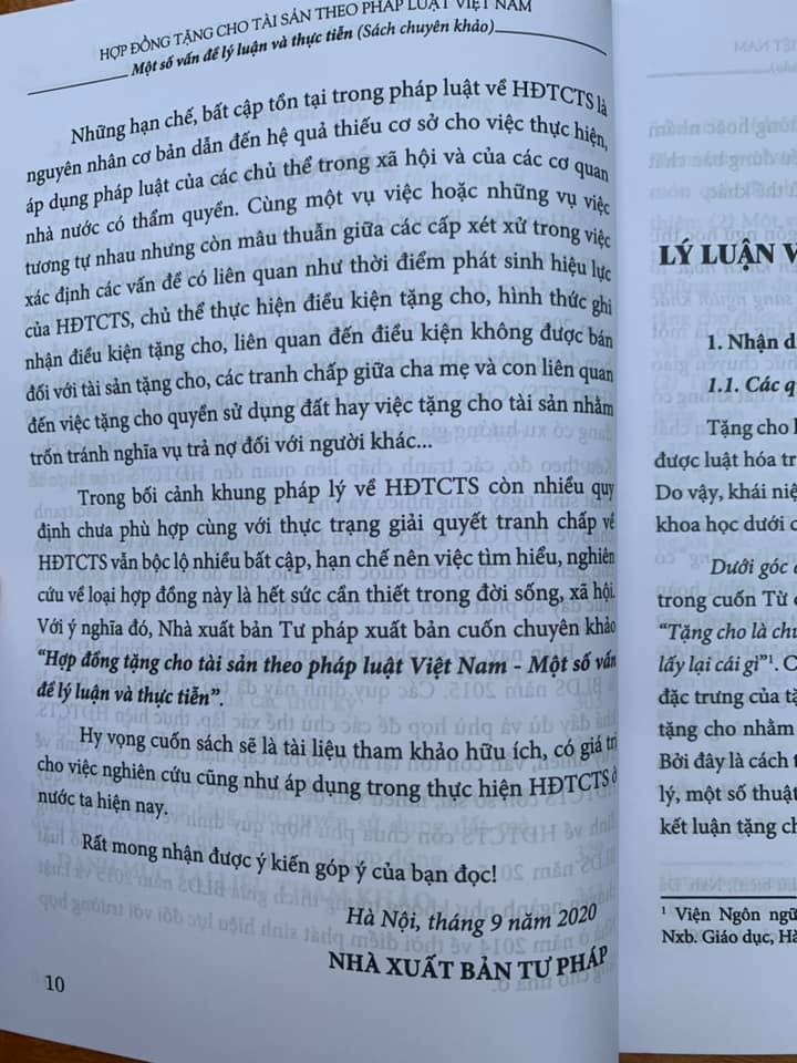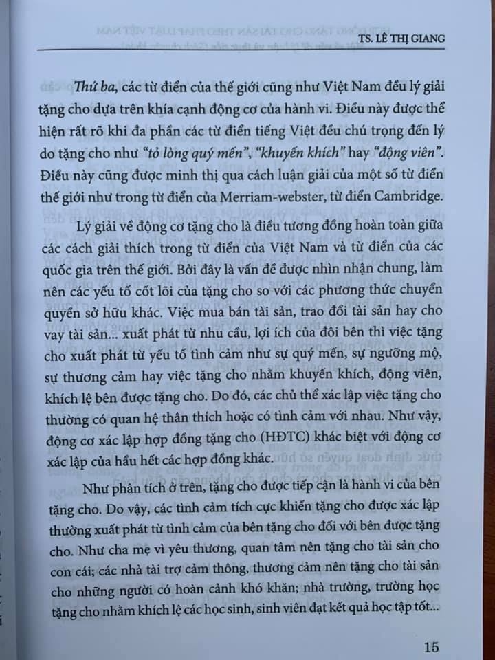 Mua tại TiktokHợp đồng tặng cho tài sản theo pháp luật Việt Nam Tác giả: Lê Thị Giang Nhà xuất bản: Tư Pháp Khổ sách: 14 x 20 cm Số trang: 362 Ngày phát hành: 11/2020 Giá bìa: 146.000 đồng