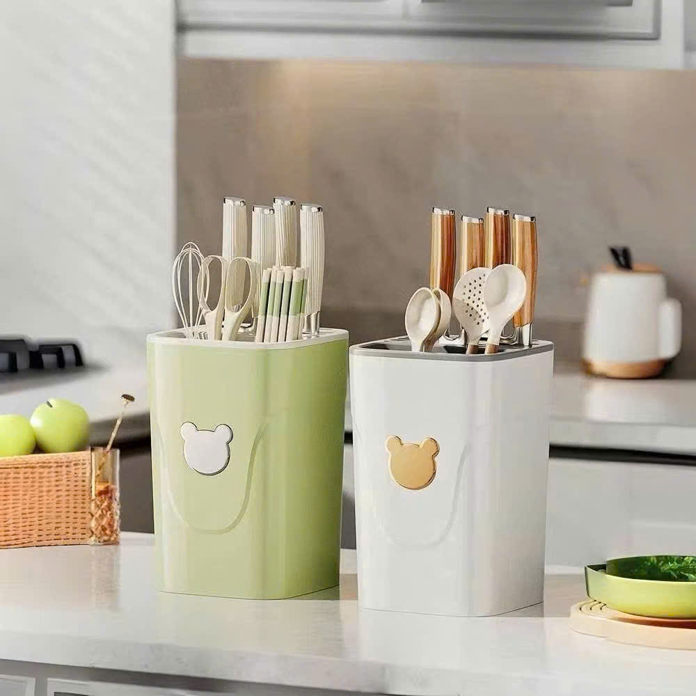 KỆ ĐỂ DAO KÉO - TÍCH HỢP ỐNG CẮM THÌA ĐŨA Kèm khay hứng nước tiện lợi Kệ Để Dao Đũa Nhà Bếp Cao Cấp - Thiết kế thông minh đa chức năng với khe