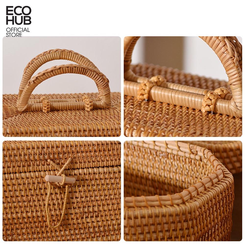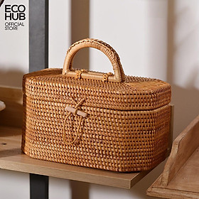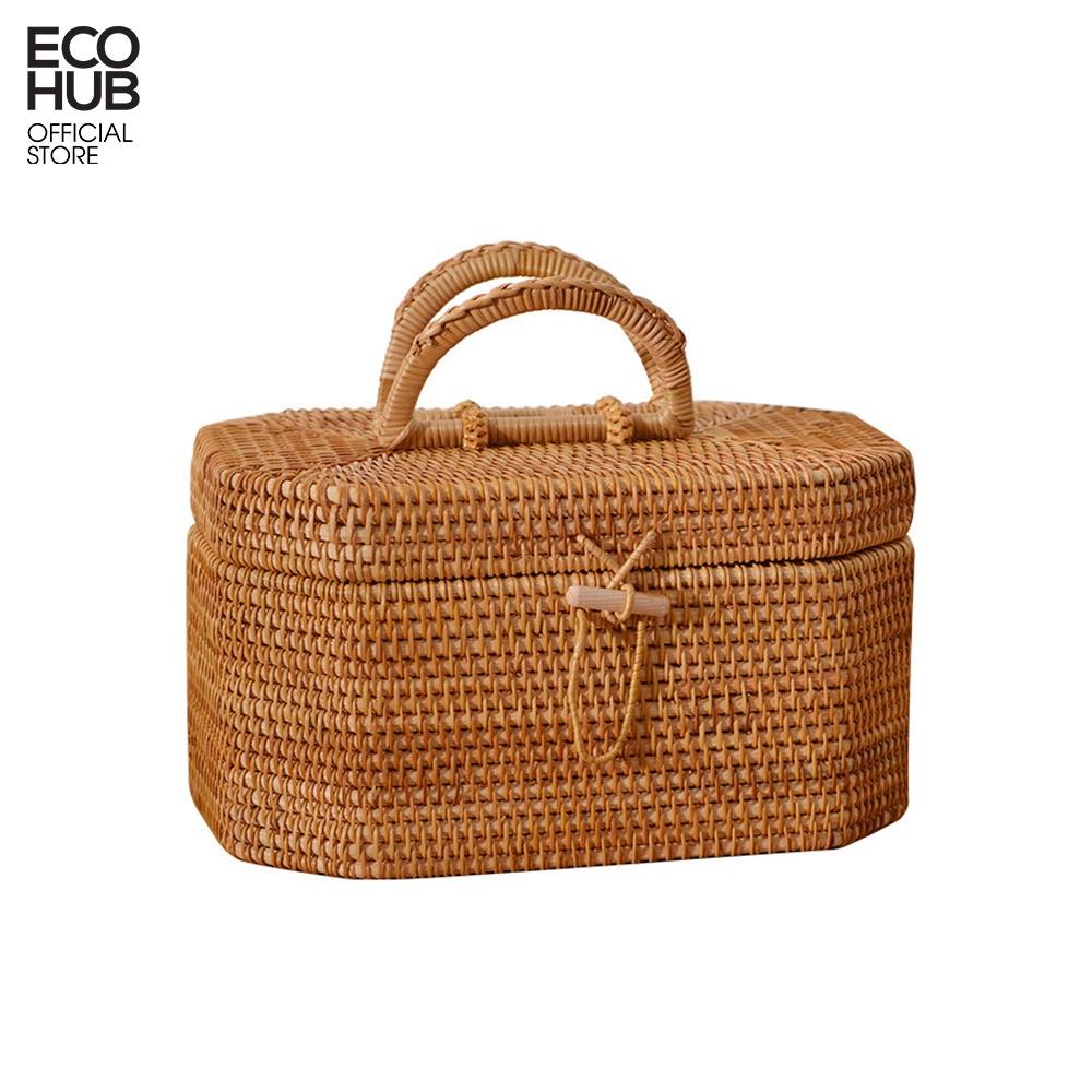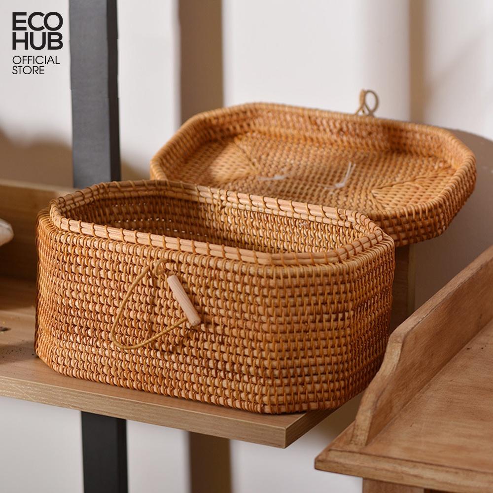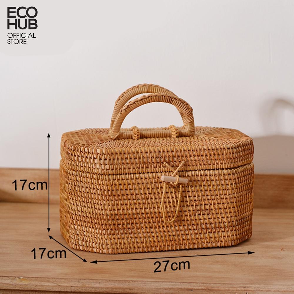 ✨Hộp đựng đồ ECOHUB bằng mây 8 cạnh có nắp đậy, tay cầm