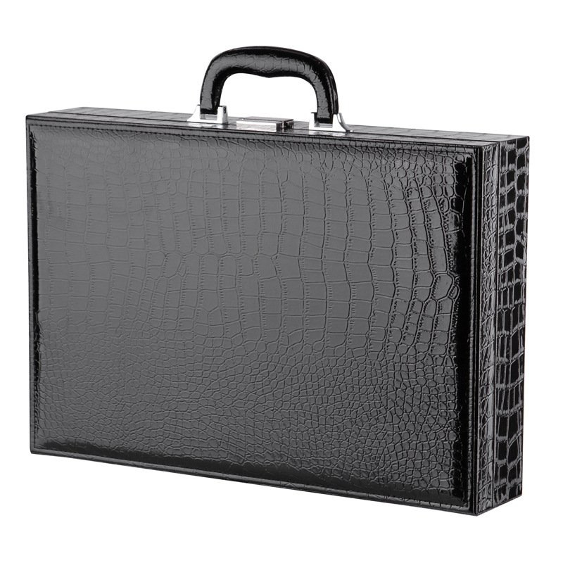 - Hộp có nắp kín, có khoá, sẵn cục mút để đồng hồ, kiểu dáng valy có quai xách