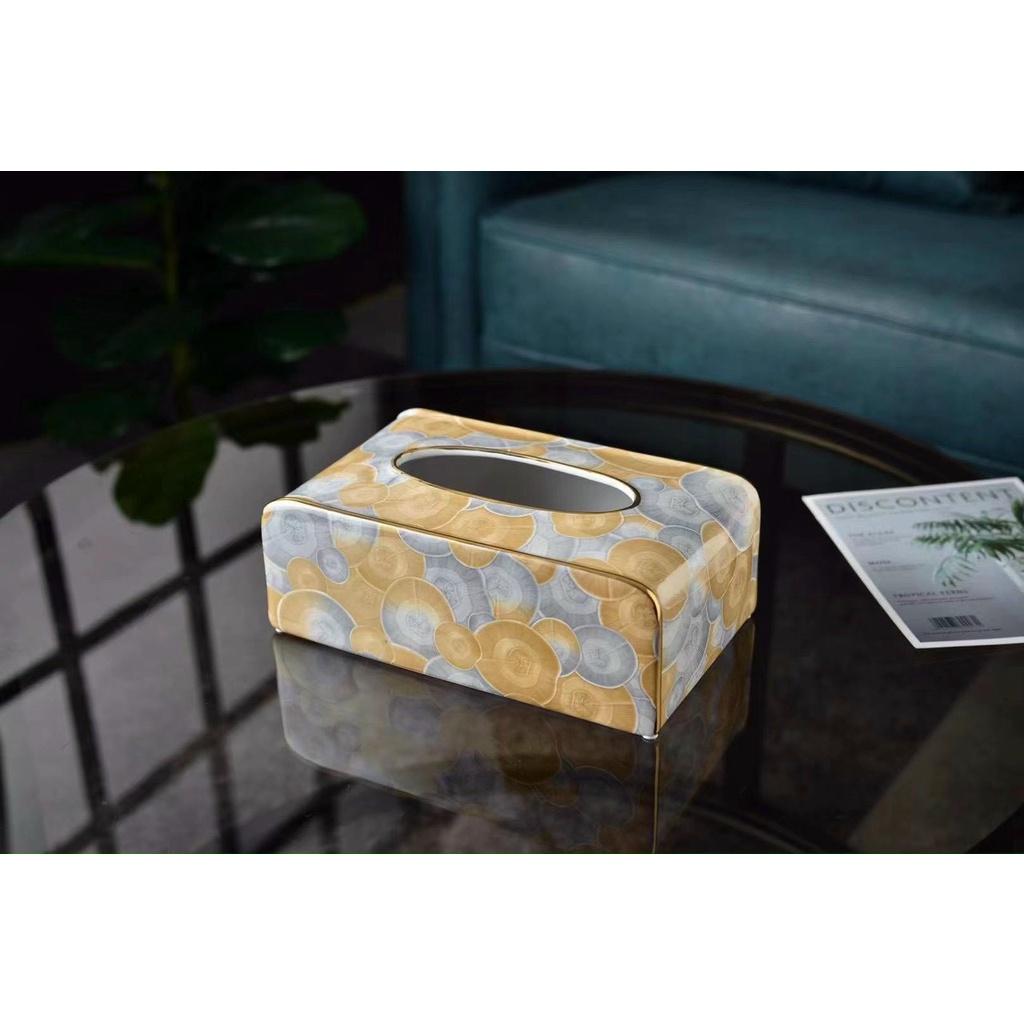 Hộp khăn giấy sang trọng theo phong cách BẮC Âu Ngoài chức năng chính, sản phẩm còn là món đồ trang trí trên bàn ăn,phòng khách,phòng ngủ Thiết kế viền vàng tăng thêm độ sắc