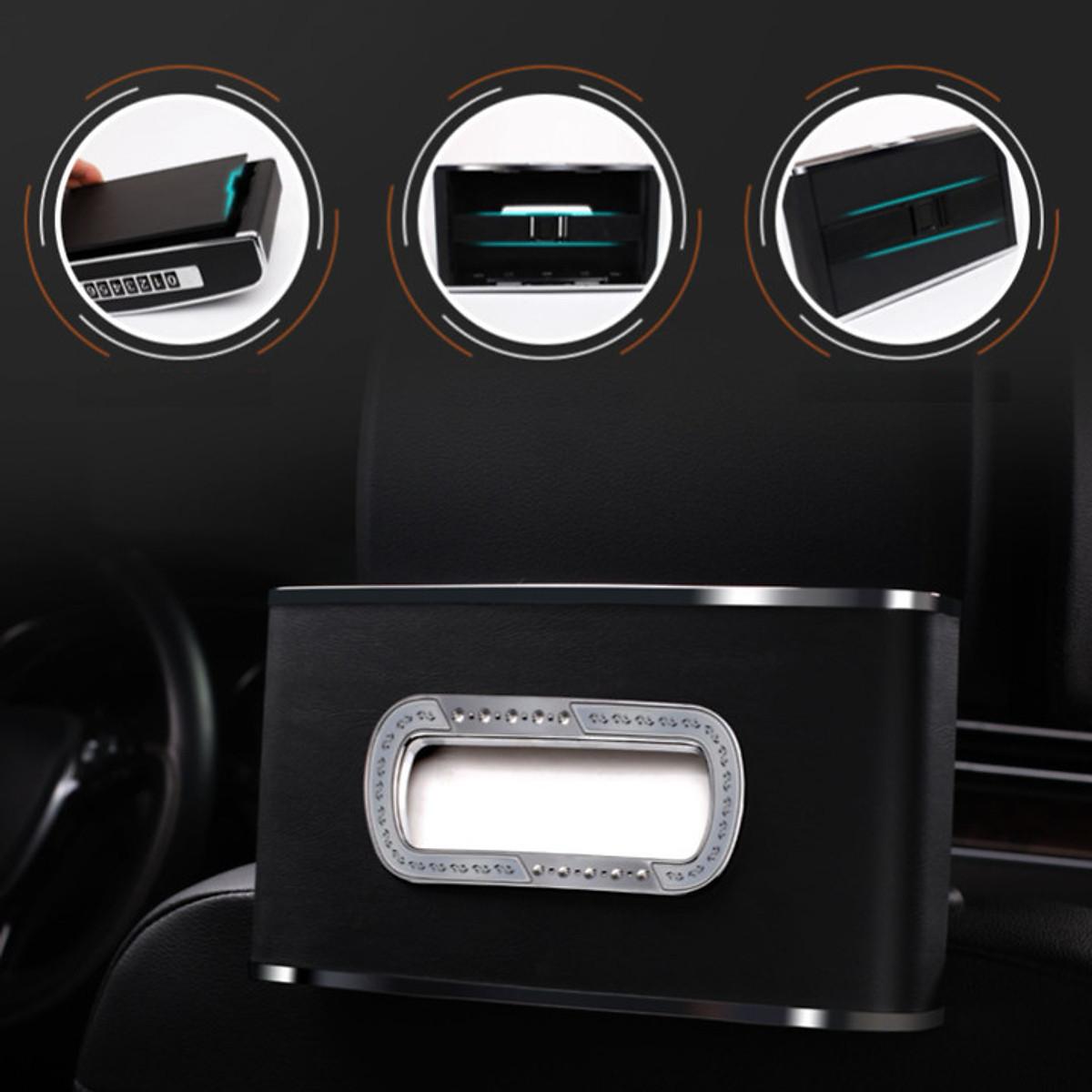 Hộp đựng khăn giấy trên ô tô có đồng hồ và bảng số điện thoại cao cấp tại ThanhBinhAuto