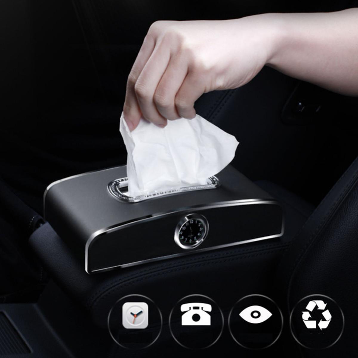 Hộp đựng khăn giấy tích hợp bảng số và đồng hồ đặt taplo ô tô tiện ích