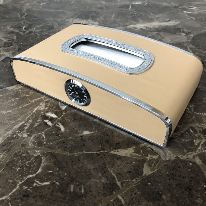 Hộp đựng khăn giấy trên ô tô tích hợp đồng hồ và bảng số điện thoại