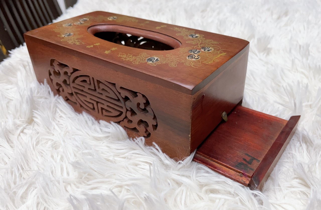 Công dụng: Hộp đựng khăn giấy gỗ được thiết kế tinh sảo, nhỏ gọn từ ngoài vào trong, bên ngoài được khắc chử Phước, bên trong dùng để đựng khăn giấy,tạo sự sang trọng cuốn hút, mới lạ đối với người nhìn