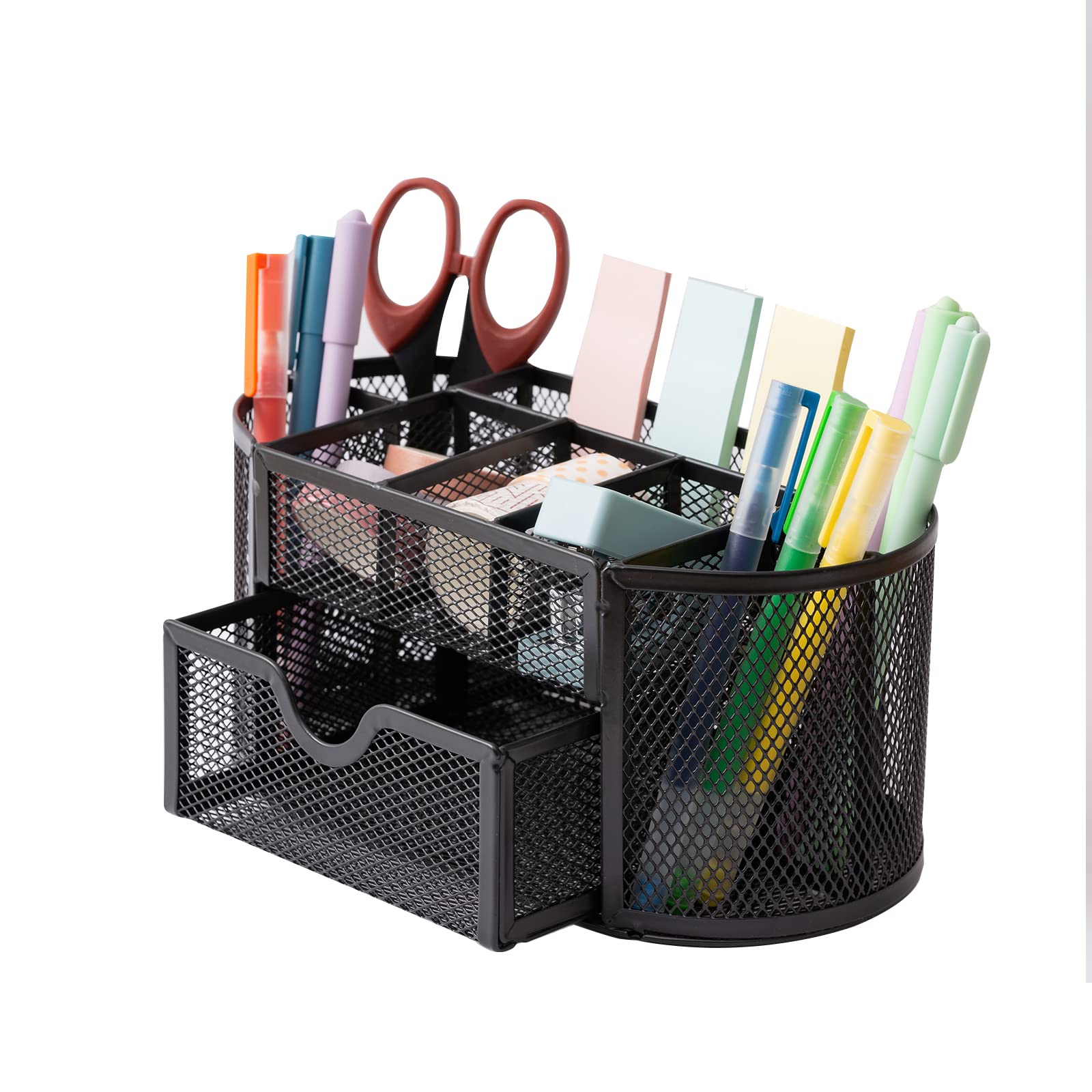 Công dụng: Thiết kế thông minh, nhiều ngăn giúp bạn để các vật dụng văn phòng một cách gọn gàng, phí dưới có ngăn kéo tiện lợi Được làm bằng kim loại dày dặn; cứng cáp; bền đẹp cho thời gian sử dụng dài lâu. Thẩm mỹ cao, phù hợp trang trí, làm quà tặng