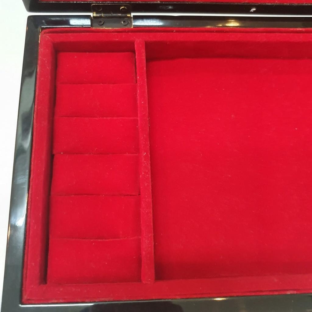 Kích thước: hộp hình chữ nhật 17.5x30.5x12.5 cm, 2 tầng bên trong có lót nhung và có gương.