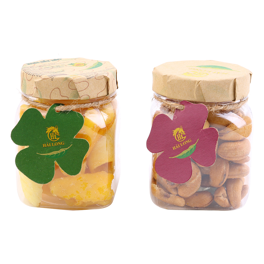 Hộp Quà Hải Long 15A bao gồm Điều rang muối vỏ lụa (230g) và Mứt gừng nướng mật ong (120g), là sự kết hợp giữa vị béo bùi, mặn mặn của hạt điều rang và