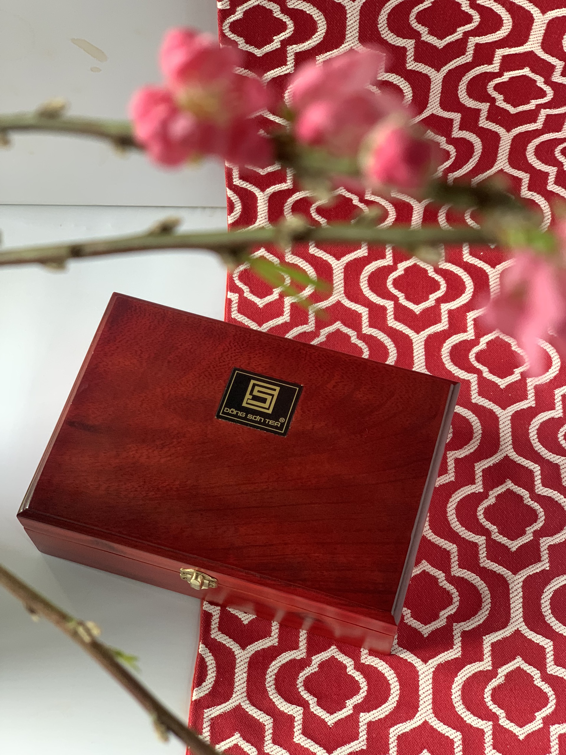 Điểm nổi bật: Hộp trà gỗ được thiết kế sang trọng, ấn tượng. Trà Xuân Tân Cương được làm từ giống Chè ta cũ xưa, và được chế biến theo quy trình sản xuất thủ công truyền thống. Hương thơm đặc trưng của trà xanh thái nguyên, vị ngọt ngào lẫn vị béo mang mùi hương cốm mới.