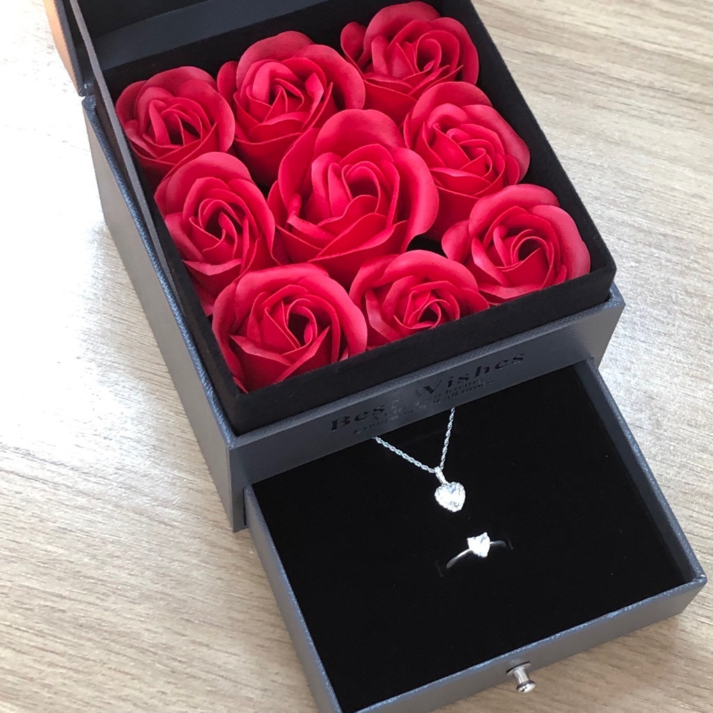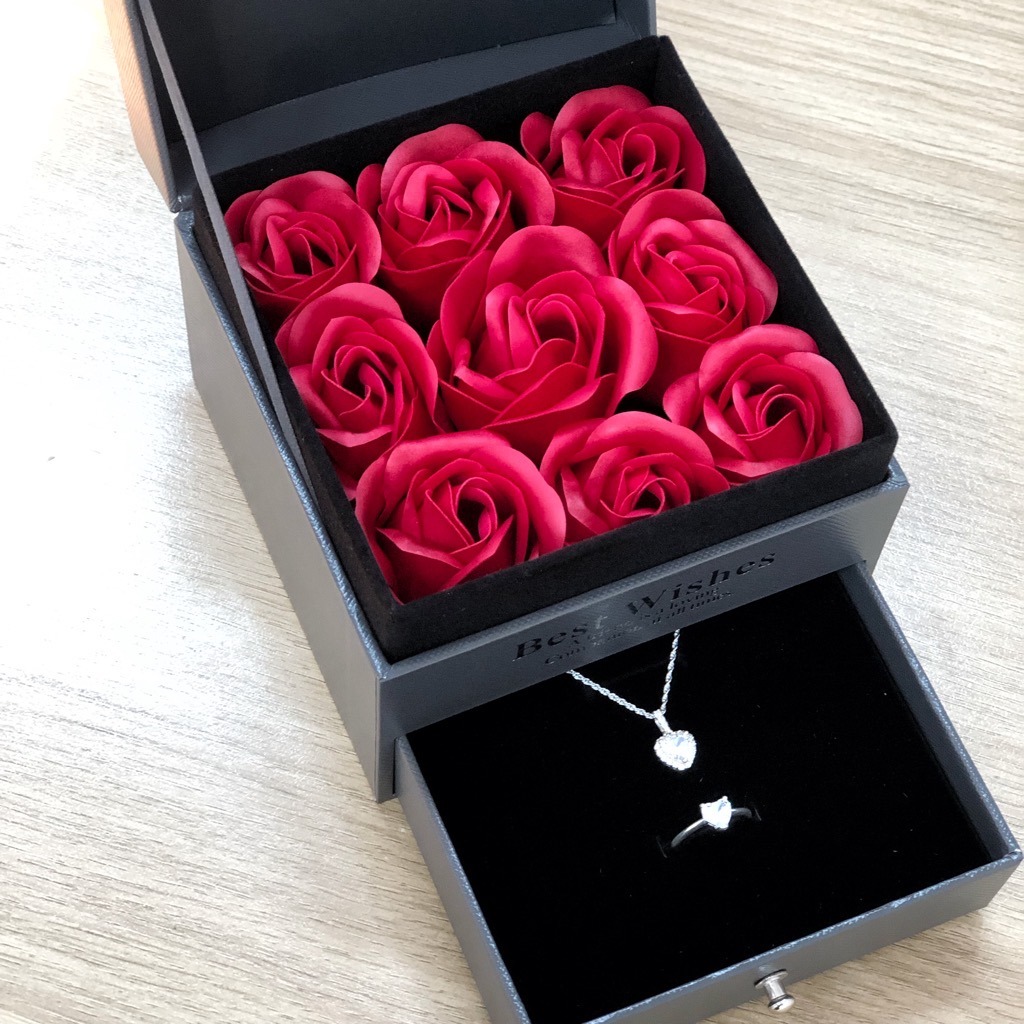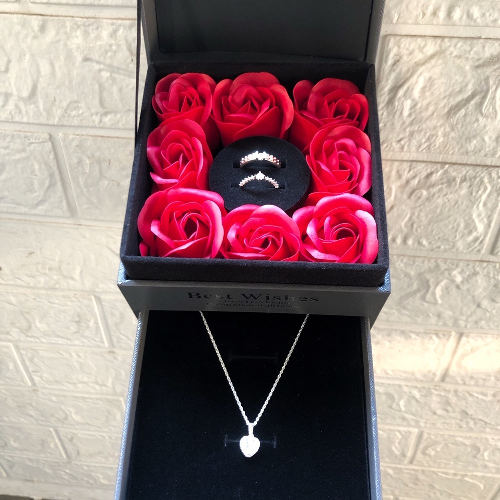 ✨Hộp Quà Trang Sức Nhẫn Dây Chuyền Hoa Tai Lắc Tay Hoa Hồng Thơm HQ015
