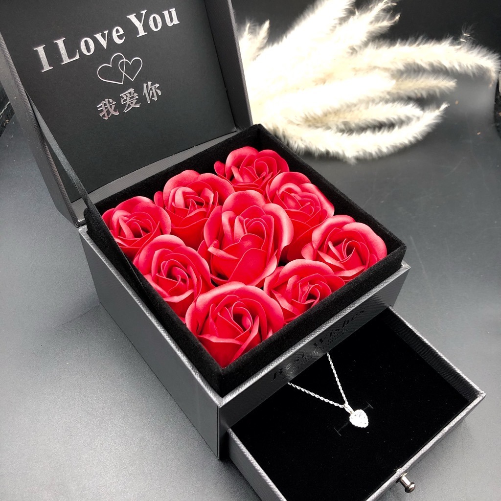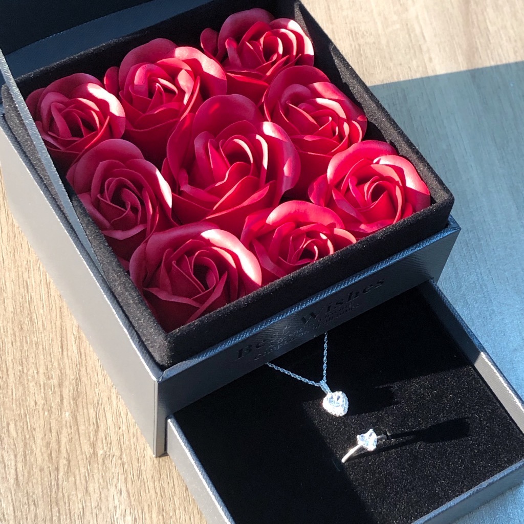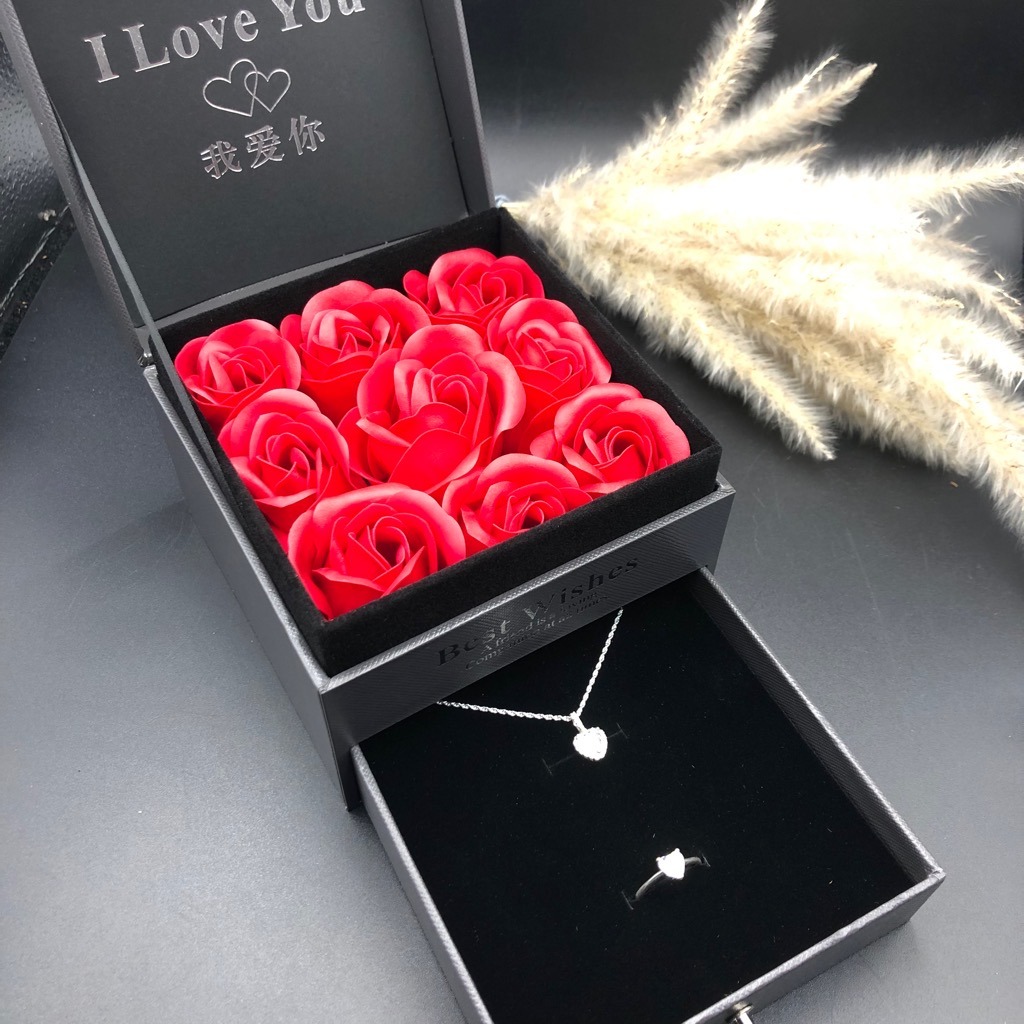 ✨Hộp Quà Trang Sức Nhẫn Dây Chuyền Hoa Tai Lắc Tay Hoa Hồng Thơm HQ015
