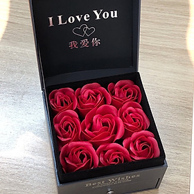 Mua tại Tiktok- Hộp quà màu ghi kích thước 12cm x 12cm x 10cm, đính 9 bông hoa hồng thơm.