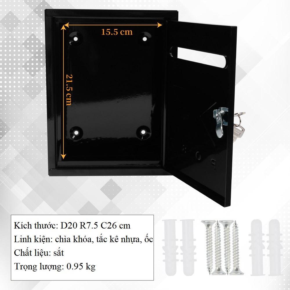 HỘP THƯ – CLASSIC - 4538  CHI TIẾT Hộp thư kim loại Treny cao cấp – hộp đựng thư hàng ngày – hộp thư trang trí trước nhà – màu đen -  có chìa khóa