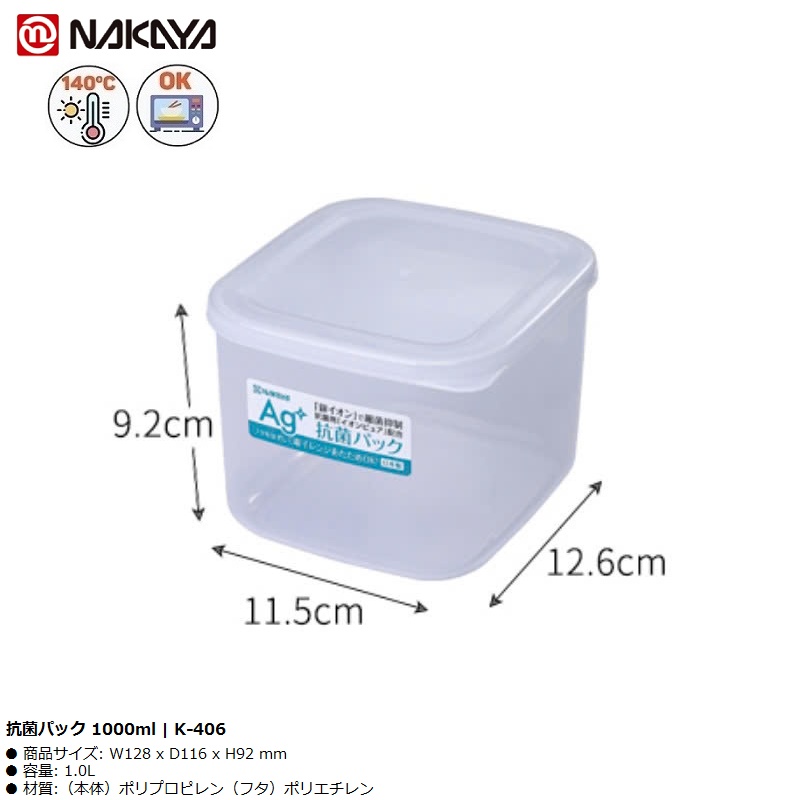 Hộp thực phẩm kháng khuẩn Ag+ 1.0L thích hợp dùng trong lò vi sóng - Nhập khẩu từ Nhật Bản.