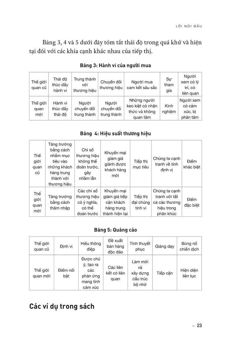 Cuốn sách này cũng đưa ra những lời khuyên cụ thể và những ví dụ thực tế để giải quyết những vấn đề và thách thức mà các nhà tiếp thị đang gặp phải trong việc xây dựng thương hiệu và tăng trưởng doanh số. Nó cung cấp cho độc giả một cách nhìn mới về thị trường và khách hàng, giúp họ đưa ra các quyết định chiến lược tiếp thị và xây dựng thương hiệu dựa trên những nghiên cứu khoa học và thực tế.