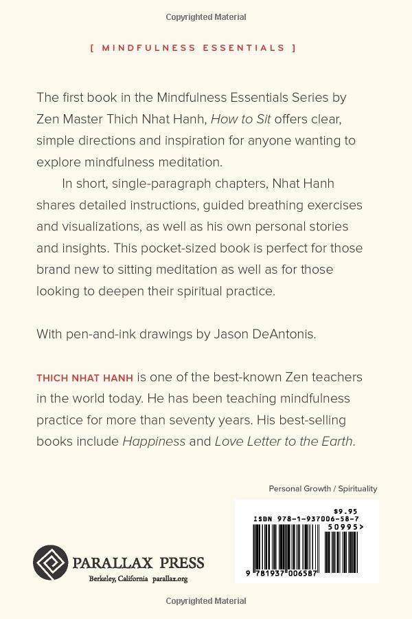 In short, single-paragraph chapters, Nhat Hanh shares detailed instructions, guided breathing exercises and visualizations, as well as his own personal stories and insights. This pocket-sized book is perfect for those brand new to sitting meditation as well as for those looking to deepen their spiritual practice.