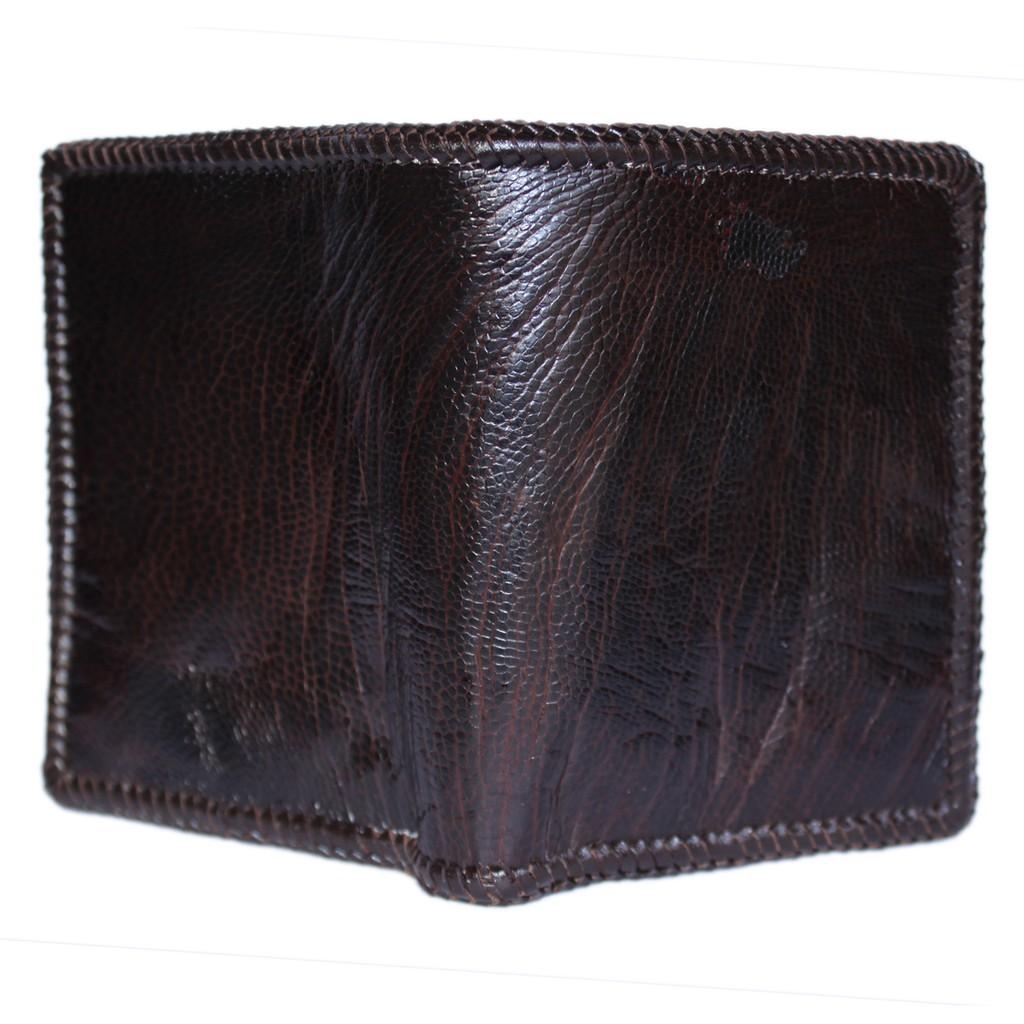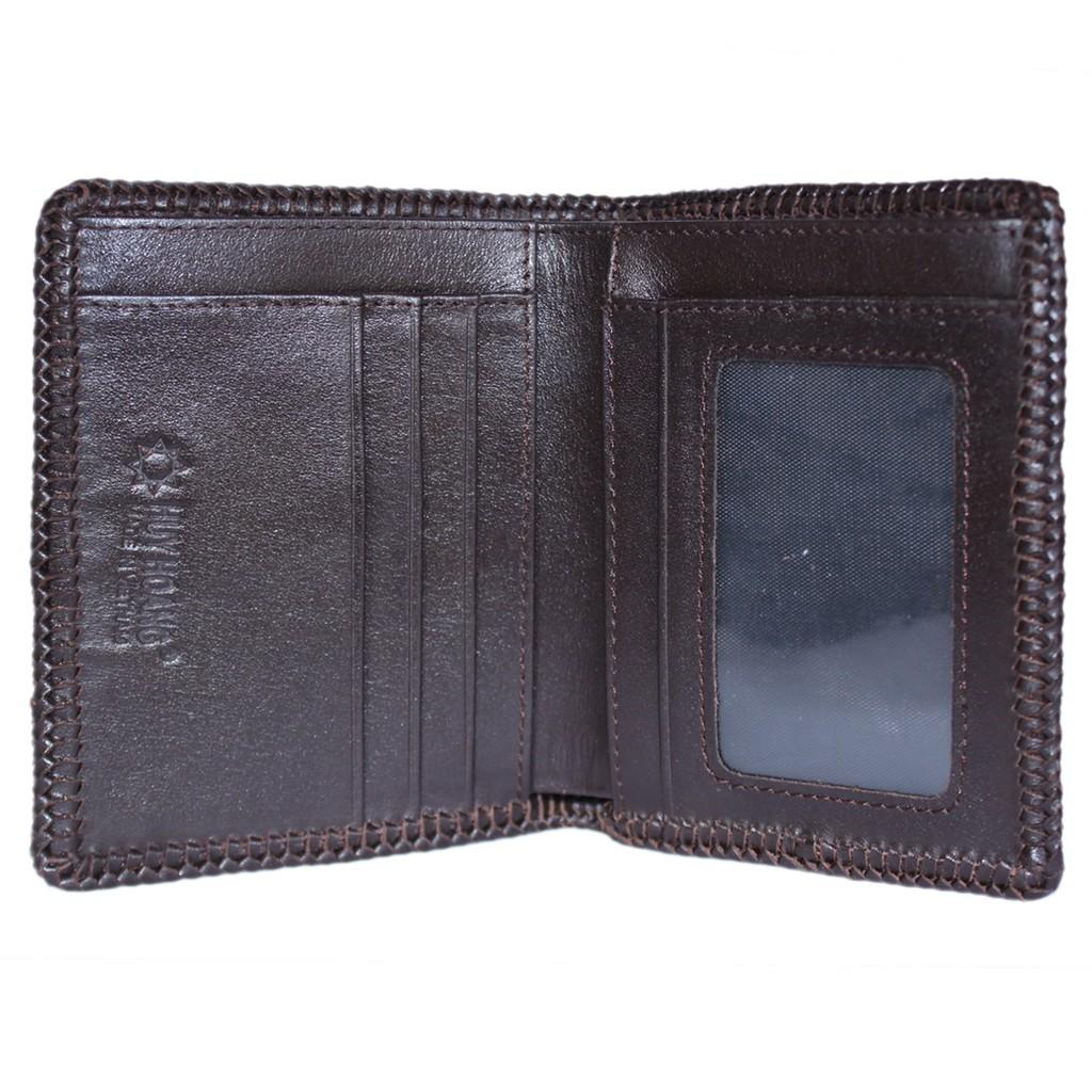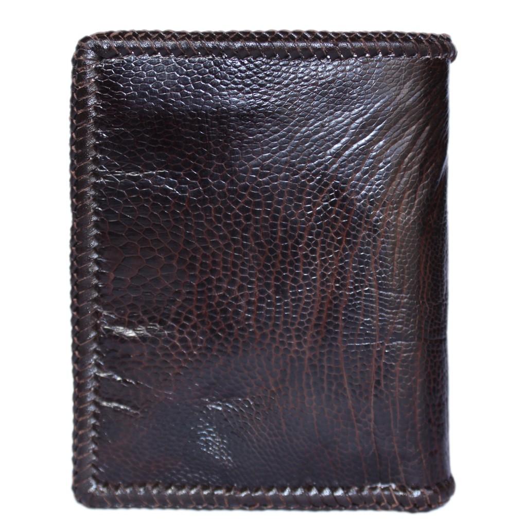 ✨HP2448 - Bóp nam Huy Hoàng da đà điểu da trơn đan viền kiểu đứng màu nâu đất