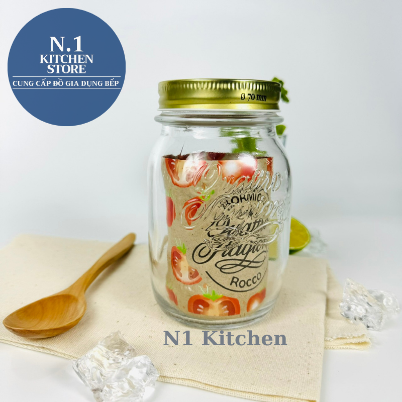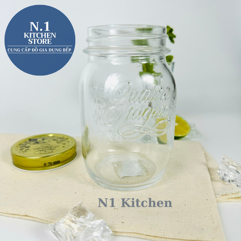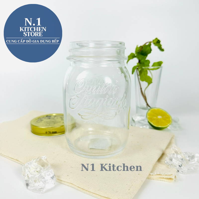 Nắp đậy màu vàng đồng nổi bật có in logo thiết kế dạng xoay giúp đậy kín và cách ly thực phẩm khỏi bụi bẩn. Phần thân hũ cách điệu với logo Quattro Stagioni in nổi vừa đẹp mắt vừa có công dụng chống trơn trượt và làm nổi bật sự tinh tế của chất liệu thủy tinh.