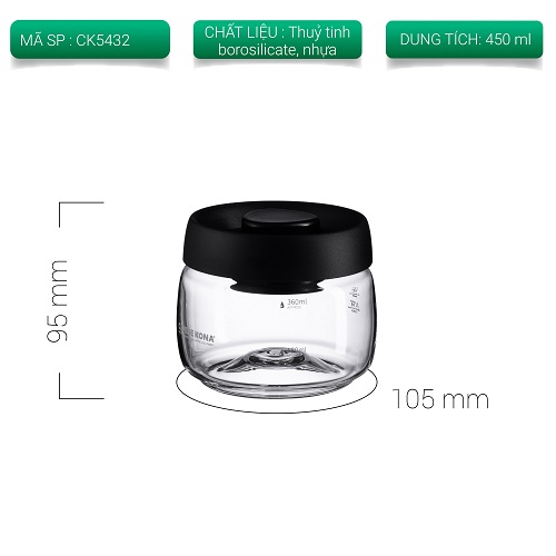 HŨ THỦY TINH HÚT CHÂN KHÔNG CAO CẤP CAFE DE KONA Giữ thực phẩm chuẩn vị hương thơm vốn có Được làm từ thủy tinh Borosilicate cao cấp cùng bề mặt nhẵn mịn