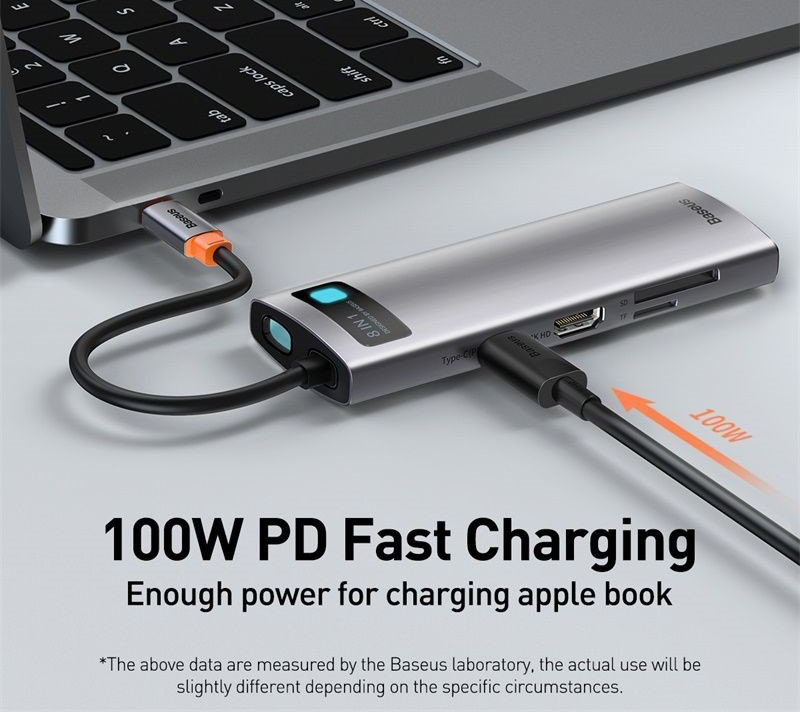 Mua tại TiktokHub chuyển đa năng Baseus Metal Gleam Series Multifunctional Docking Station là phiên bản nâng câp mới nhất của dòng HUB Type C đa năng mà Baseus vừa giới thiệu vào cuối tháng 3/2021. Sản phẩm không những được cải tiến về kiểu dáng thiết kế mà còn mang trong mình những nâng cấp đáng kể về mặt công nghệ, mang đến cho bạn một sản phẩm HUB chuyển đa năng hoàn toàn mới với hiệu suất cao và ổn định hơn đi cùng thiết kế bắt mắt và sang trọng hơn . 8 in 1hỗ trợ các cổng: HDMI x 1 USB3.0 x 3 RJ-45 x 1 Type C (PD100W) x 1 Cổng SD x 1 Cổng TF x 1
