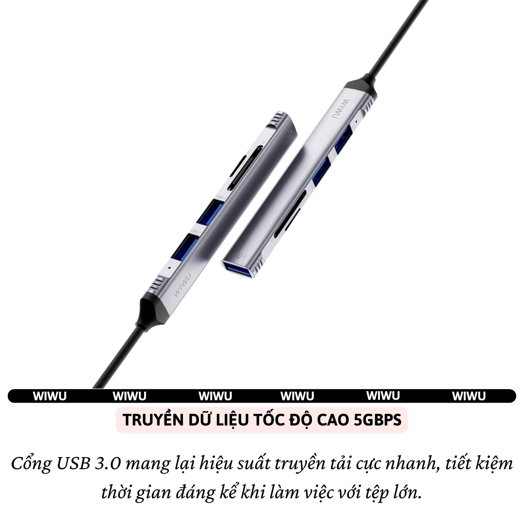 Mua tại TiktokHUB CHUYỂN ĐỔI WIWU ZOLO 5 IN 1 – KẾT NỐI NHANH, GỌN NHẸ MỌI NƠI Bạn đang cần mở rộng cổng kết nối cho laptop hay MacBook? Hãy để WiWU ZOLO 5-in-1 USB Hub trở thành trợ thủ đắc lực – một giải pháp gọn nhẹ, thời trang và siêu tiện lợi! ĐẶC ĐIỂM NỔI BẬT 5 Cổng Kết Nối Trong 1 – Đáp ứng mọi nhu cầu công việc và giải trí: