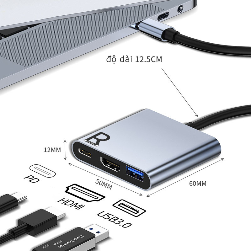 ✨Hub chuyển đổi USB Type-C Sang USB 3.0/HDMI/Type C - Hub chuyển đổi 3in1 RiBi - Hàng Chính Hãng
