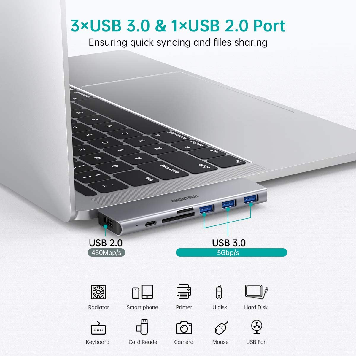 [Mở rộng 4 cổng USB 3.0] Bộ chuyển đổi Type-C hỗ trợ kết nối đồng thời 4 thiết bị USB, chẳng hạn như ổ cứng ngoài, ổ flash USB, chuột, bàn phím, thẻ nhớ, [Cắm