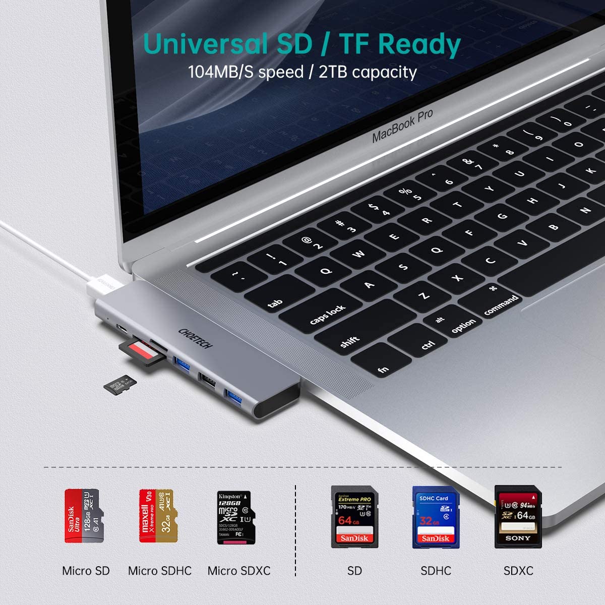 ✨Hub type c chia cổng Dual Type-C 7 in 1 hỗ trợ sạc nhanh 100W cho Macbook / laptop Type-C hiệu CHOETECH M23 ra 3 cổng USB 3.0, 1 cổng USB 2.0, Cổng đọc thẻ SD & Micro SD, sạc nhanh chuẩn Thunderbolt 3 0 - Hàng chính hãng