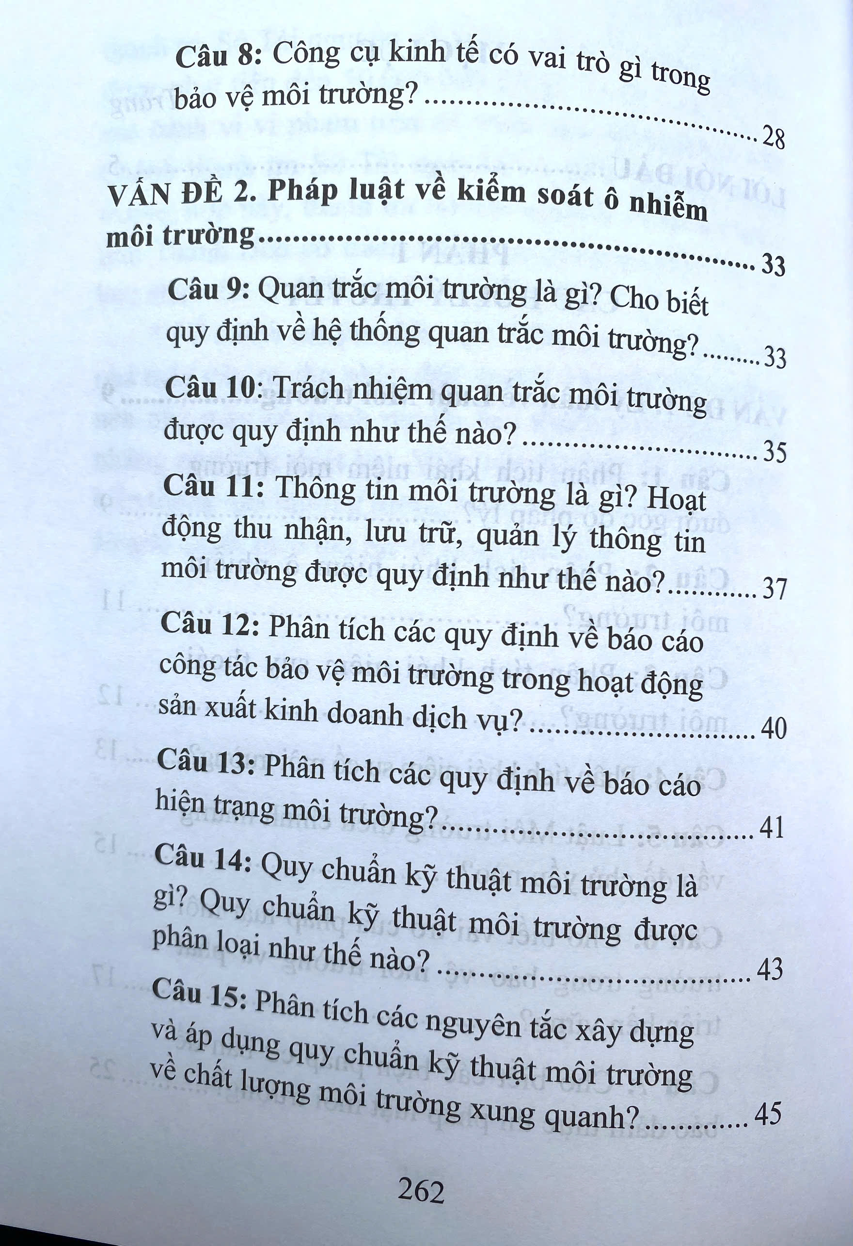Cuốn sách được kết cấu theo các nội dung cơ bản của môn học Luật Môi trường. Để tạo điều kiện cho độc giả có thể theo dõi một cách nhanh nhất những vấn đề mà mình quan tâm, các câu hỏi lý thuyết được thiết kế theo từng nhóm vấn đề cùng một số dạng bài tập tình huống điển hình. Hy vọng, cuốn sách sẽ mở ra cơ hội đề tìm hiểu cặn kẽ và tiếp cận với những bình luận, đánh giá trên phương diện lý luận cũng như thực tiền về những vấn đề nảy sinh xung quanh các quy định pháp luật môi trường một cách hợp lý, khoa học và hiệu quả.
