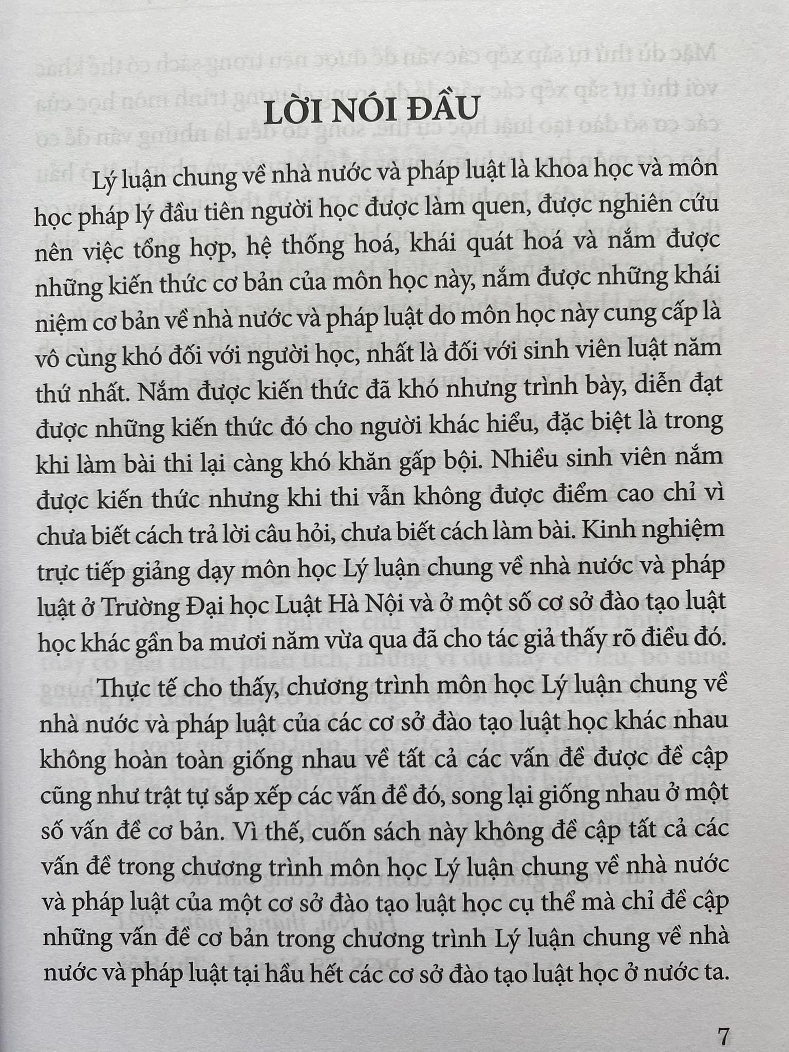 Trong hệ thống khoa học pháp lý, Lý luận chung về nhà nước và pháp luật là khoa học cơ sở, cung cấp lý luận và phương pháp luận cho các khoa học pháp lý chuyên ngành. Vì thế, trong chương trình đào tạo cử nhân luật, Lý luận chung về nhà nước và pháp luật là môn học luật đầu tiên mà hầu hết sinh viên, học viên của các cơ sở đào tạo luật học ở nước ta phải tiếp xúc, làm quen. Bởi vì, đây là môn học cung cấp cho người học những kiến thức cơ bản về nhà nước và pháp luật, đặt nền tảng giúp người học có thể tiếp thu được các kiến thức khoa học pháp lý chuyên ngành. Do vậy, muốn học tốt các môn học luật khác, sinh viên, học viên chuyên ngành luật cần nắm được những kiến thức cơ bản về nhà nước và pháp luật do môn học này cung cấp.