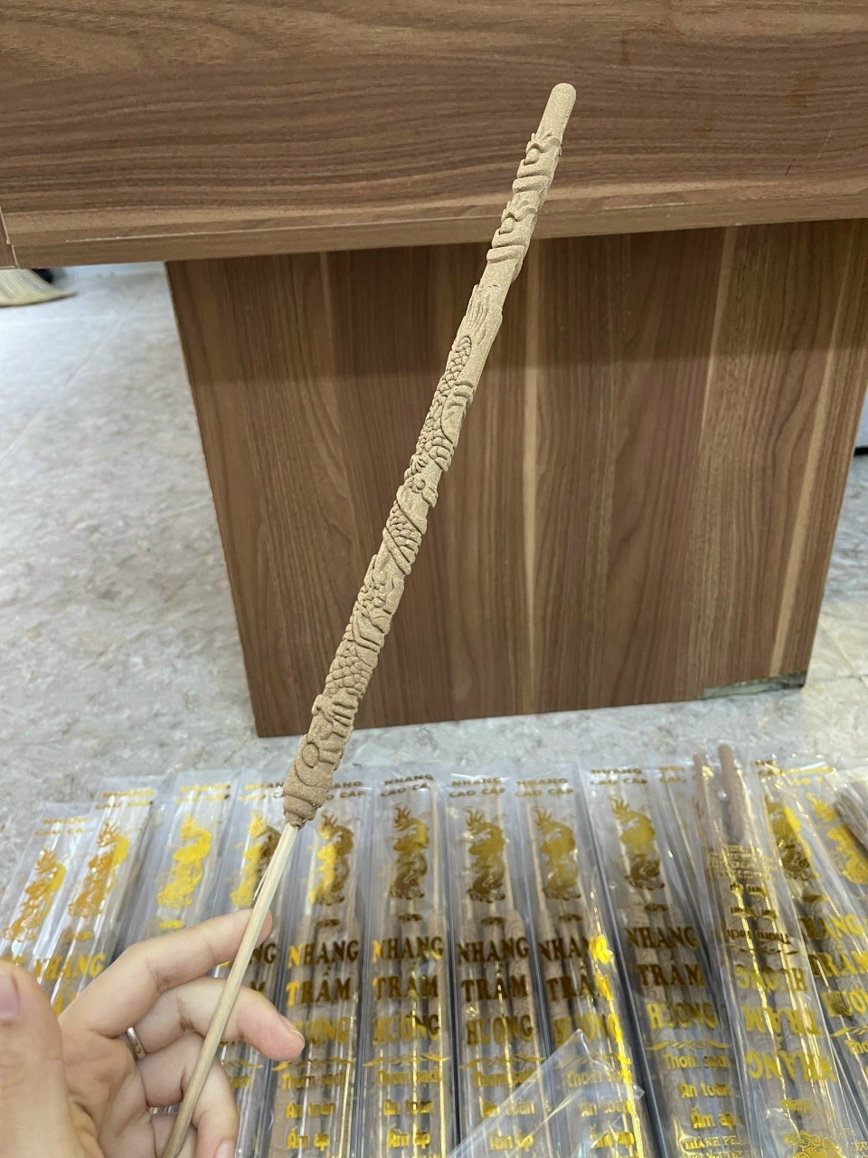 Mua tại TiktokKích thước: Hương cao 50 cm Khối lượng: 200g Chất liệu: trầm hương Mẫu 1: Hộp có 10 cây Mẫu 2 ( Hương chạm rồng ): Hộp có 3 cây Mỗi cây thắp được 4 giờ Hương được làm từ bột trầm nguyên chất thiên nhiên ủ rất lâu nên mùi ngọt, thanh an toàn cho sức khỏe cả gia đình.