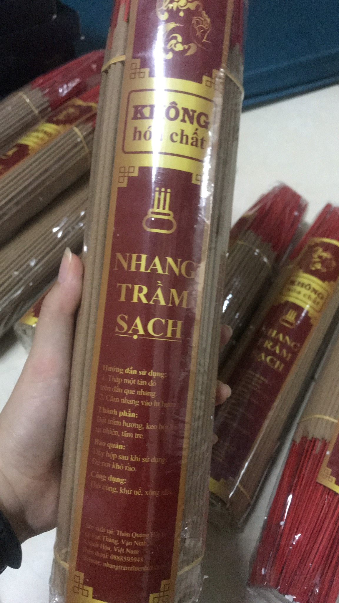 Mua tại TiktokThành phần : 30% trầm hương nguyên chất, Keo bời lời tự nhiên, Tăm tre, Nước sạch Hương sạch không hóa chất Sản xuất tại: Vạn Giã – Khánh Hòa Vạn Giã Khánh Hoà thì nổi tiếng về trầm, thơm dịu ngọt đặc trưng, mùi thơm ấm, đậm mùi trầm nhưng vẫn nhẹ nhàng thoang thoảng vì không có hóa chất, hương không nồng. Xông lên tạo cảm giác thu giãn ngoài ra còn khử mùi phòng, tẩy uế, tránh tà.