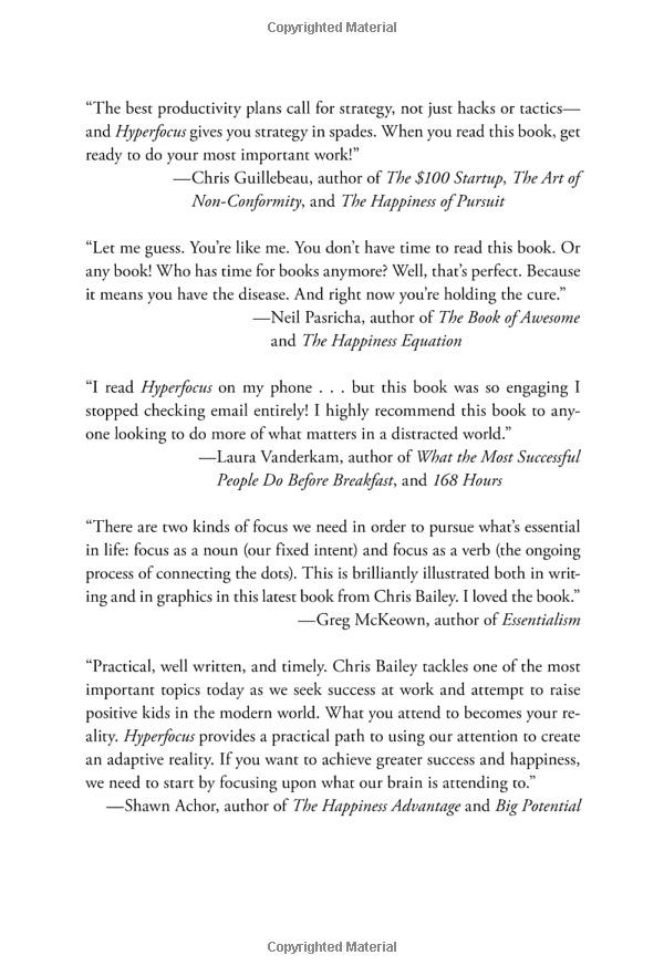 'The best productivity plans call for strategy, not just hacks or tactics – and Hyperfocus gives you strategy in spades. When you read this book, get ready to do your most important work!' Chris Guillebeau