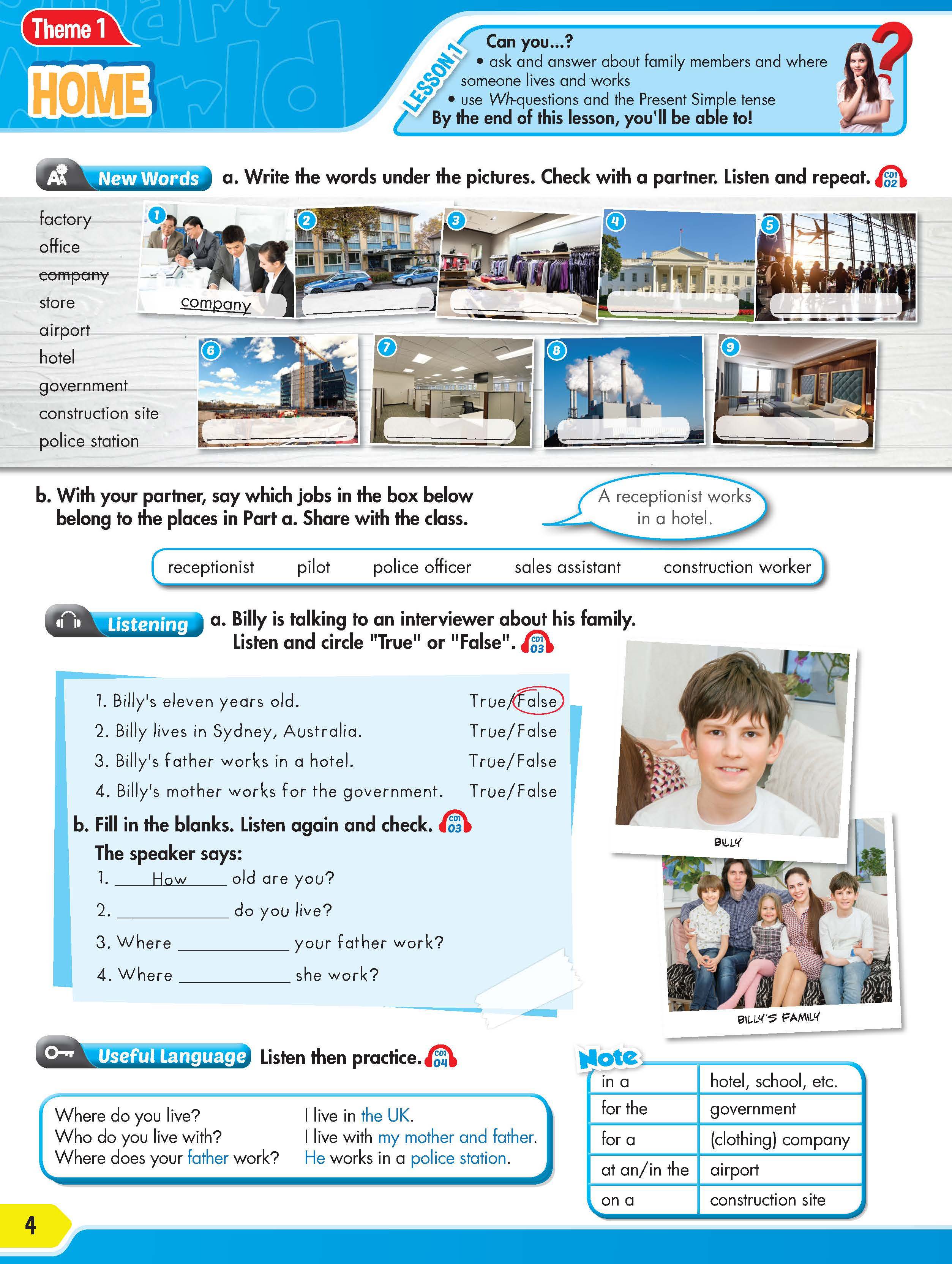 Share It! 4 Workbook The Workbook provides reinforcement of the Student Book lessons' content, and can be used in class or as homework.
