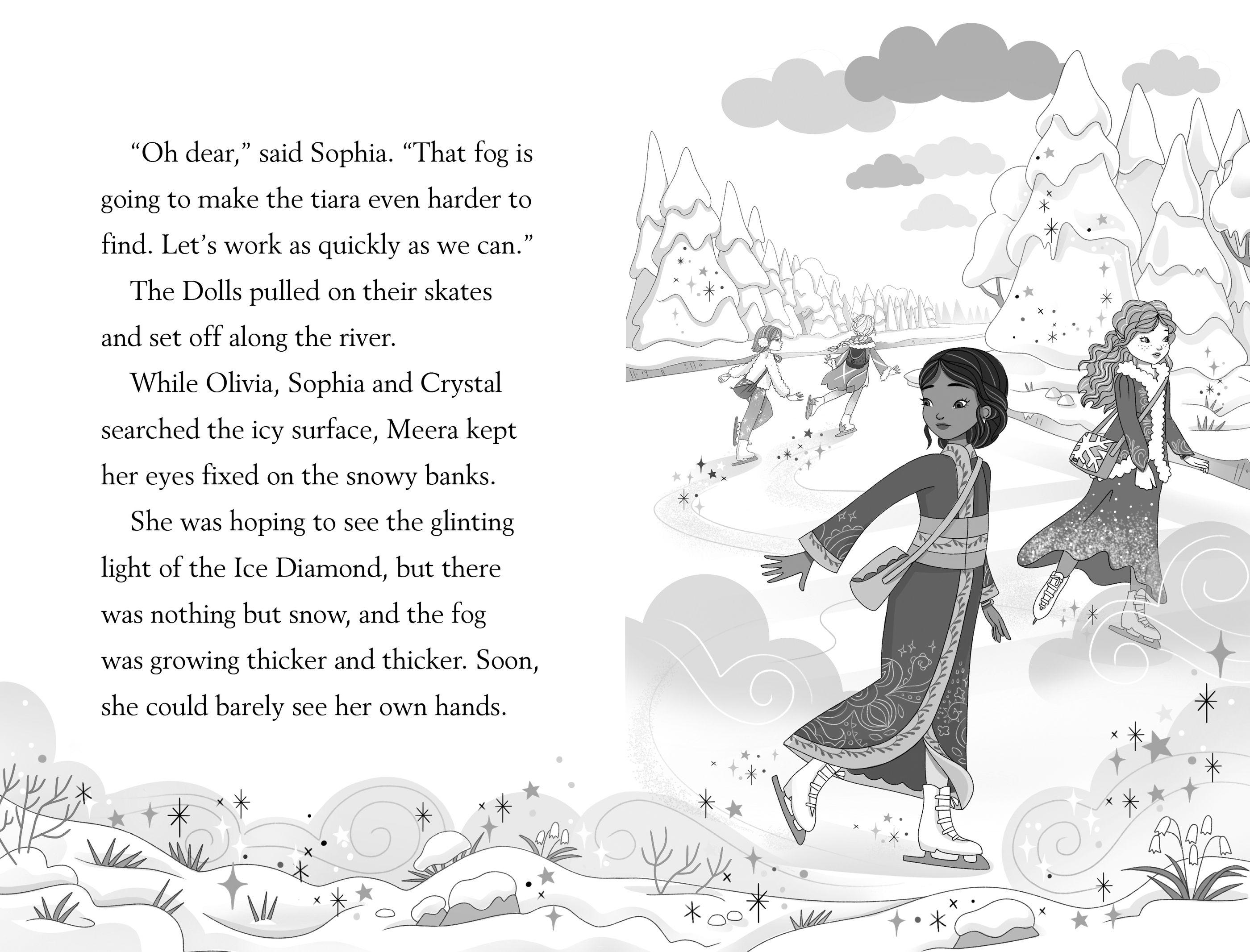 Meera, Sophia and Olivia, the Princess Dolls, are busy planning their mid-Winter celebration in Dolly Town when they get a call through from Mission Control - the Snow Princess on the Majestic Isle needs their help. It's her baby sister's Naming Ceremony that afternoon and she is due to wear the famous Ice Diamond Tiara - but she's lost it! Can the Princess Dolls help the Snow Princess find the tiara in time for the ceremony?
