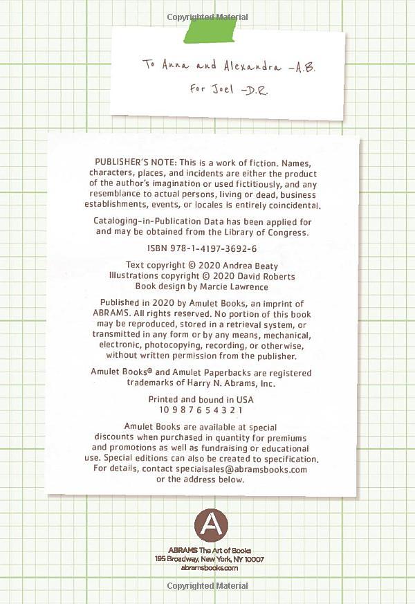 Iggy Peck is an architect at his very core: When he’s not making houses out of food, his head is up in the clouds, dreaming of design. So he’s totally blown away when Ada Twist’s Aunt Bernice inherits an old house from ice-cream mogul Herbert Sherbert that is filled with countless rooms from all his favorite architectural periods. But something’s not quite right . . . Everyone says the house is haunted, and it seems that a number of priceless antiques—which were supposed to help Aunt Bernice pay for the house’s upkeep—have gone missing. If they can’t find those antiques, Aunt Bernice might lose the house forever. It will take all of Iggy’s knowledge of architecture and the help of the other Questioneers—Rosie Revere, Ada Twist, and Sofia Valdez—to solve the mystery and find the treasure!