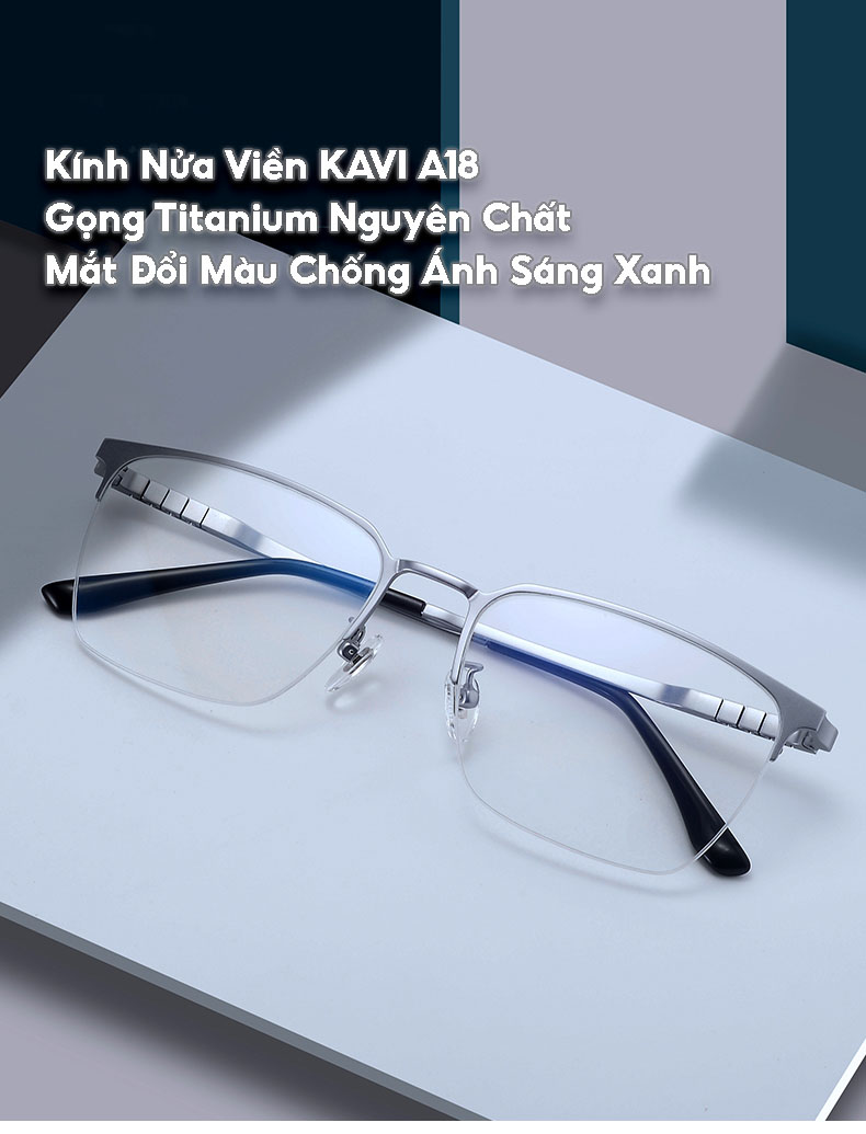 ✨KAVI A18 – Kính nửa viền gọng Titanium nguyên chất, đổi màu nhanh khi ra nắng và chống ánh sáng xanh