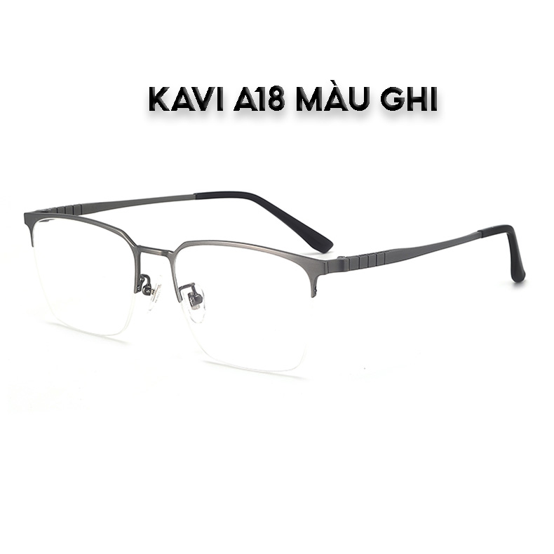 KAVI A18 – Kính nửa viền gọng Titanium nguyên chất, đổi màu nhanh khi ra nắng và chống ánh sáng xanh, bảo vệ mắt toàn diện cả trong nhà và ngoài trời   Đặc Điểm Nổi Bật Kính KAVI KaviA18 • Kính sử dụng cho người thường xuyên tiếp xúc với màn hình máy tính, điện thoại • Mắt kính cao cấp bằng hợp chất của thuỷ tinh, chất liệu High index giúp mắt kính trong hơn, được khuyên dùng trong y tế, không giống như các loại kính mắt nhựa giá rẻ có thể gây hại cho mắt. • Gọng kính chất liệu Titan cao cấp • Mắt kính ngăn chặn hoàn toàn ánh sáng xanh có hại từ màn hình máy tính, điện thoại, cho ánh sáng xanh có lợi đi qua • Mắt kính Hàn Quốc cao cấp trong suốt, không bị ngả vàng, đảm bảo màu sắc chân thực • Mắt kính chống xước, chống tia UV400, chống phản quang không bị in bóng trên mắt kính • Mắt kính siêu trơn chống bám nước và bụi bẩn • Công nghệ mắt kính đổi màu nhanh Fast Transition khi ra nắng • Đeo kính giúp Giảm nhức mỏi mắt khi dùng máy tính, điện thoại. Hạn chế tăng độ cận và nguy cơ mắc các bệnh về mắt. • Bộ sản phẩm bao gồm: Kính, Khăn lụa siêu dày , Hộp đựng kính cao cấp, thẻ bảo hành chính hãng Kavi 1 năm • Màu sắc gọng: Đen, Bạc, Ghi   Vì sao bạn nên chọn kính Kavi ? • Thương hiệu hàng đầu Việt Nam về Kính chống ánh sáng xanh dùng máy tính • Chất lượng đảm bảo, kính được kiểm định bởi Bộ Khoa Học & Công Nghệ • Kính được bảo hành 1 năm và đổi trả miễn phí trong 7 ngày nếu không hài lòng • Mỗi chiếc kính đều được sản xuất tỉ mỉ từ khâu chọn gọng, cắt mắt kính, đóng hộp chau chuốt • Mắt kính mặc định là 0 độ, khách hàng có thể yêu cầu cắt mắt cận giá không đổi ( Gửi chi tiết độ cận viễn vào inbox cho shop sau khi đặt hàng ) • Kiểu dáng thời trang phù hợp cho cả nam và nữ • Giá cả phải chăng vì được sản xuất và bán trực tiếp từ nhà máy • Kavi có nhiều mẫu kính phù hợp mọi khuôn mặt, đội ngũ nhân viên tư vấn online nhiệt tình, chăm sóc khách hàng nhanh 24/7 Hướng dẫn sử dụng & bảo quản • Nên dùng cả hai tay khi đeo và gỡ gọng kính • Hạn chế cầm vào tròng kính mắt để không làm bẩn, xước mắt kính, giúp kính luôn sáng đẹp • Vệ sinh và lau chùi mắt kính bằng nước xịt, khăn lau chuyên dụng ( nếu không có nước lau kính thì dung nước máy thường, không dùng cồn hay các hóa chất khác để rửa mắt kính ) • Tránh nhiệt độ cao và va chạm mạnh • Để gọng kính vào hộp khi không sử dụng   Chính sách bảo hành của Kavi • Bảo hành 1 năm, đổi trả miễn phí trong 7 ngày nếu không hài lòng về chất lượng sản phẩm • Hỗ trợ vệ sinh kính, xiết ốc nếu bị lỏng, nắn chỉnh gọng theo yêu cầu trọn đời sản phẩm   Kavi nhận CẮT MẮT KÍNH CẬN VIỄN LOẠN theo yêu cầu giá không đổi • Quý khách đặt mắt kính cận vui lòng inbox cho Kavi các thông tin “Số độ 2 mắt” và “Khoảng cách đồng tử (PD)”