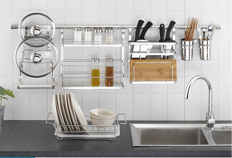 Mô tả chi tiết: Giá treo dụng cụ nhà bếp đa năng giúp bạn sắp xếp gọn gàng các vật dụng như dao, kéo, muỗng, thìa, phới lồng, bàn chải rửa chén, và nhiều loại