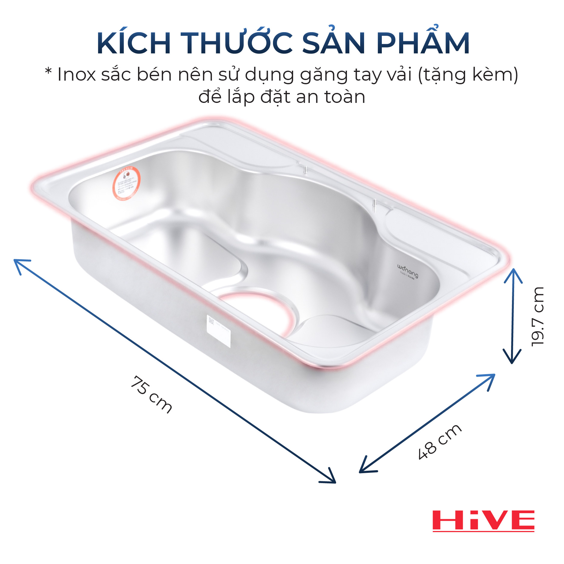 Quy Cách SP (R*S*C): W715*D450*H175 Khoang Tủ(mm): 750 Chất liệu: Inox SUS304HL