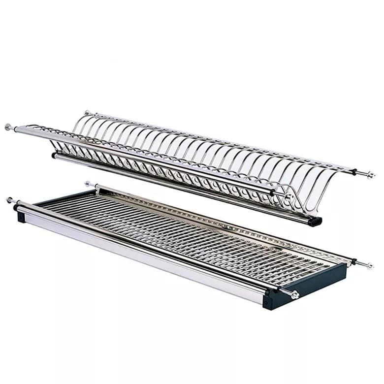 Thông tin sản phẩm: - Màu sắc: Inox mờ - Chất liệu: Inox 304, nan dẹt Tính năng sản phẩm: - Sử dụng ray âm giảm chấn cao cấp, có lắp che ray - Có