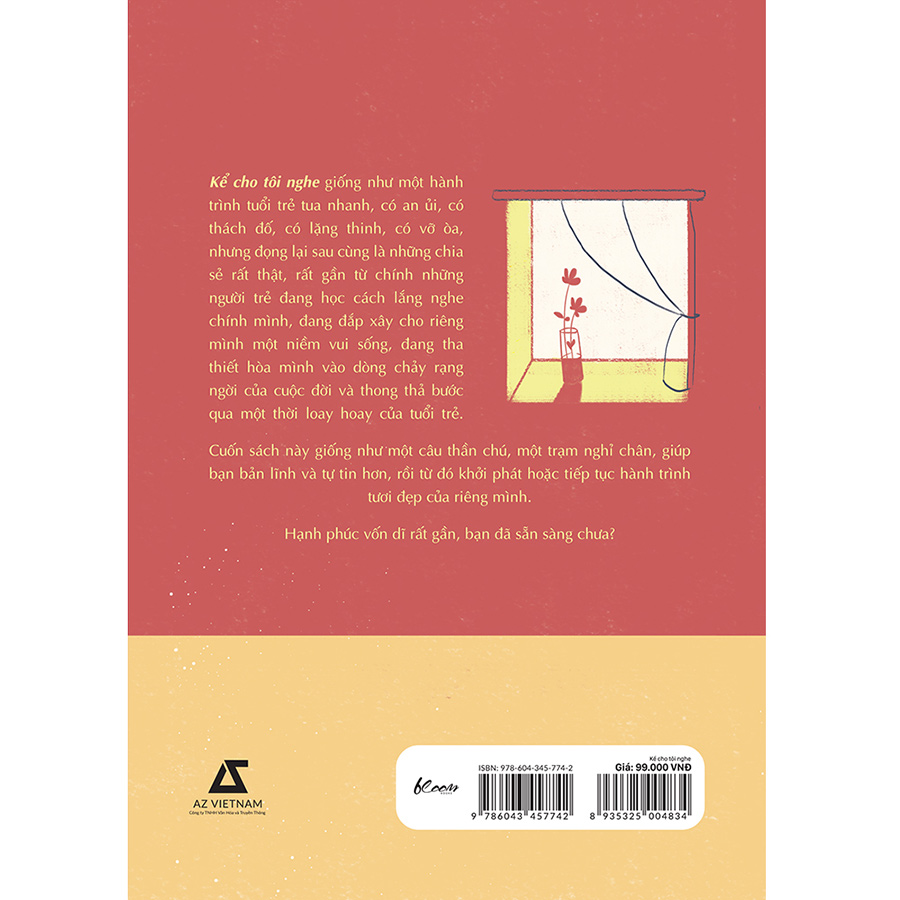 Kể cho tôi nghe giống như một hành trình tuổi trẻ tua nhanh, có an ủi, có thách đố, có lặng thinh, có vỡ òa, nhưng đọng lại sau cùng là những chia sẻ rất thật, rất gần từ chính những người trẻ đang học cách lắng nghe chính mình, đang đắp xây cho riêng mình một niềm vui sống, đang tha thiết hòa mình vào dòng chảy rạng ngời của cuộc đời và thong thả bước qua một thời loay hoay của tuổi trẻ.