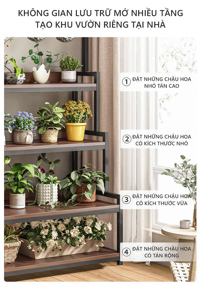 Công năng: Với thiết kế đa tầng thông minh giúp bạn sắp xếp các chậu hoa chậu cây trong nhà và ban công gọn gàng. Là điểm nhấn trang trí nội thất độc đáo