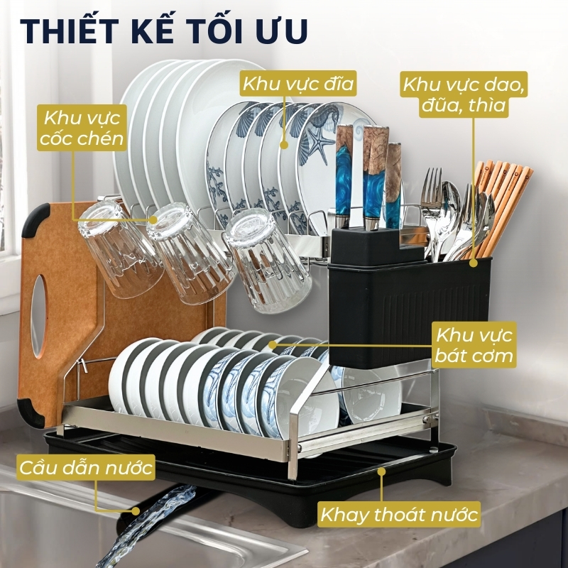 ✨Kệ để chén bát đĩa, úp cốc inox DandiHome có khay hứng nước tặng kèm