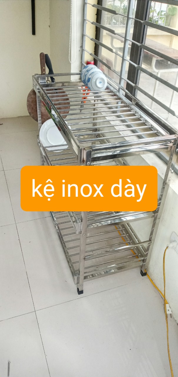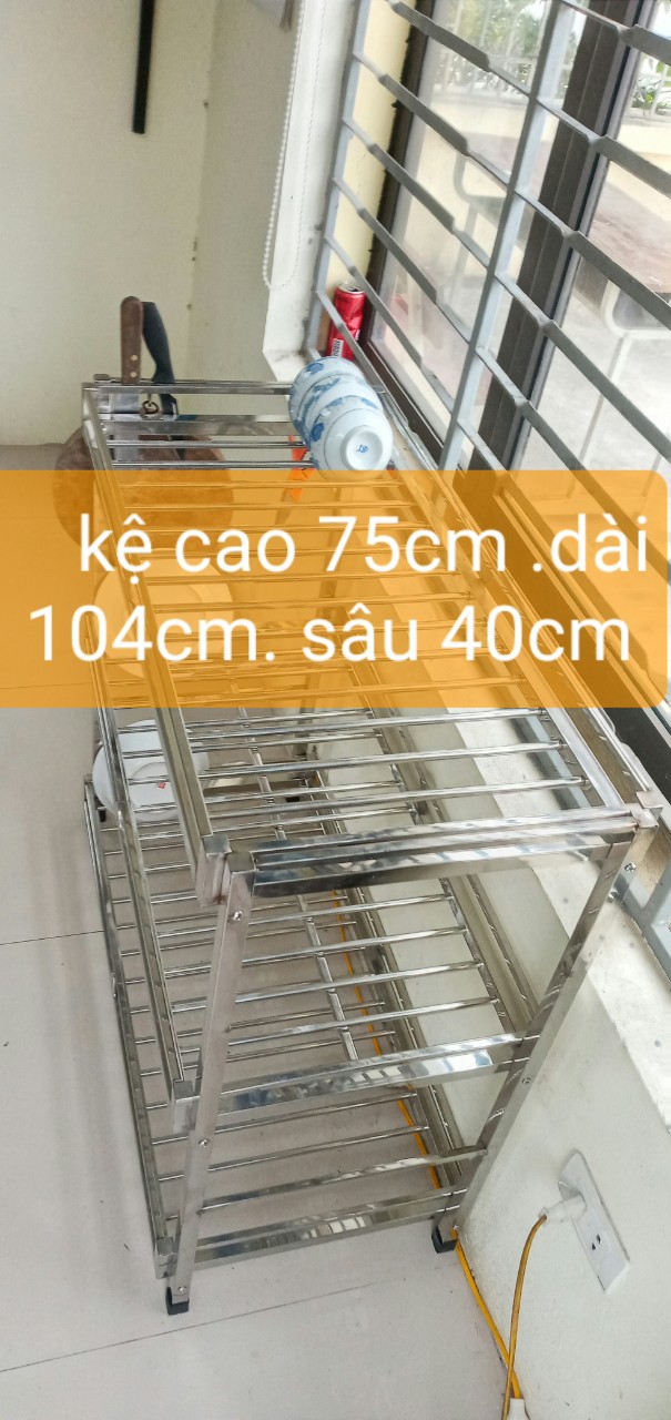 Mua tại Tiktokcty inox khởi hòa chuyên sx các sp về inox ,với dòng sp kệ để đồ nhà bếp inox được cty sx như sau 1 . kích thước kệ cao 75cm ,dài 104 cm ,sâu 40cm 2 , khung chính của kệ được làm bằng hộp 2x2 cm ,các tầng của kệ được đan bằng phi 10mm ,khoảng cách các phi là 4cm 3 . kệ thiết kế làm 3 tầng và được liên kết bằng bulong inox 4 . kệ dùng cho soong nồi ,bát đĩa ,dao thớt vv