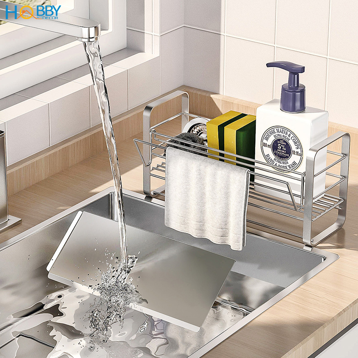 Kệ đựng dụng cụ rửa chén gác bồn rửa tiện dụng Hobby home decor KRC9 Inox 304